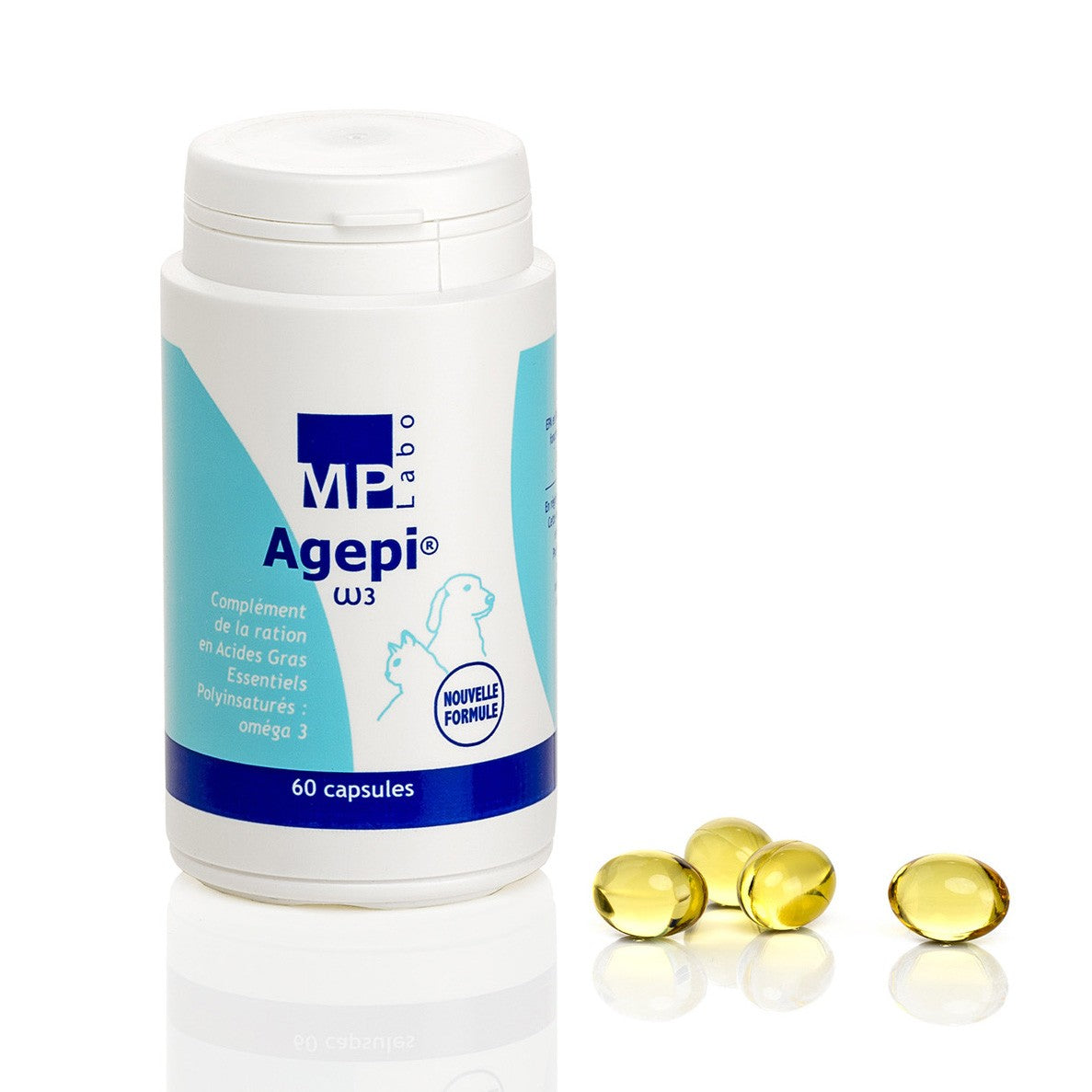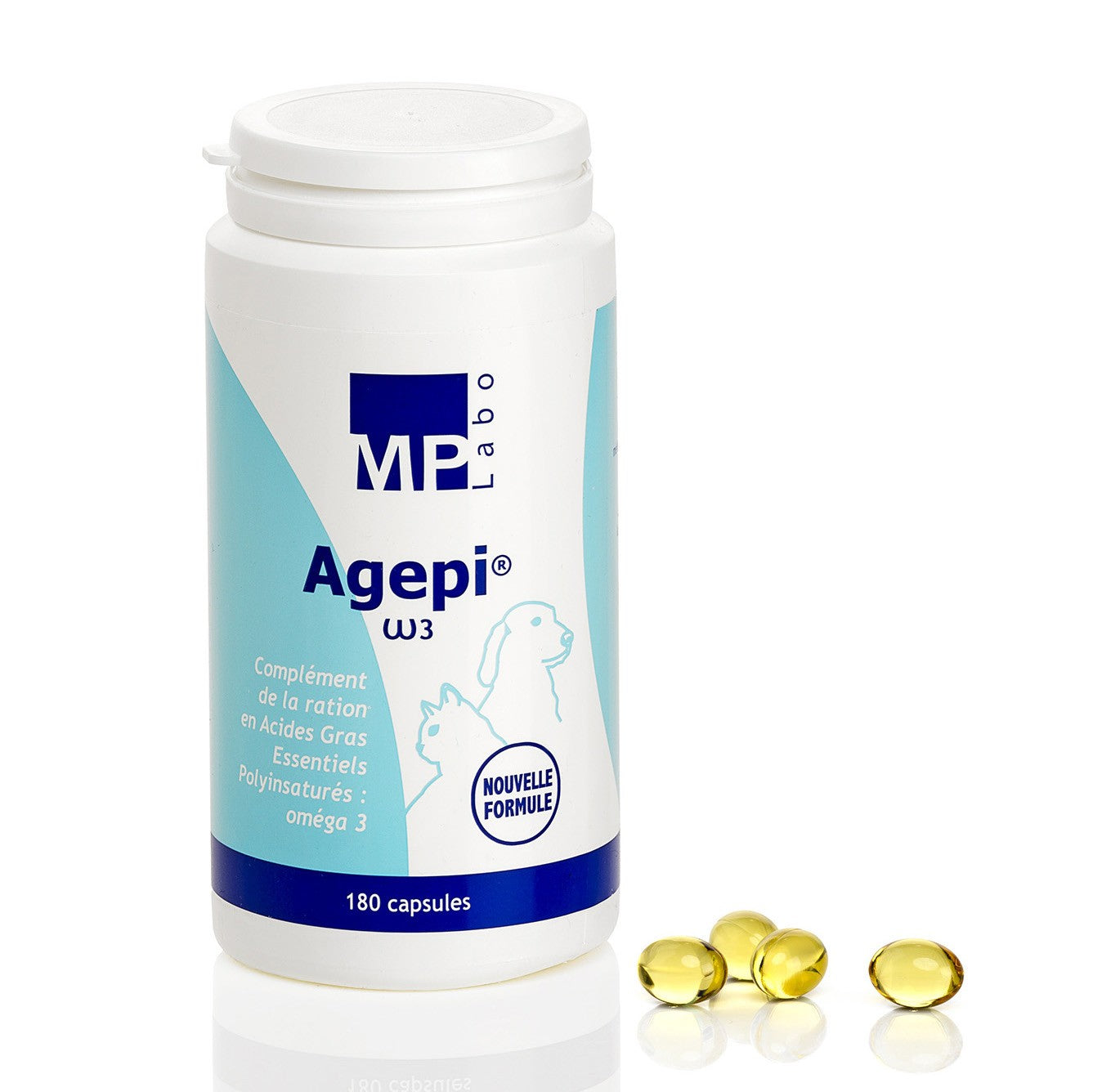 Agepi Oméga 3 est un complément alimentaire polyvalent pour chiens et chats contenant uniquement des acides gras essentiels polyinsaturés (oméga 3).