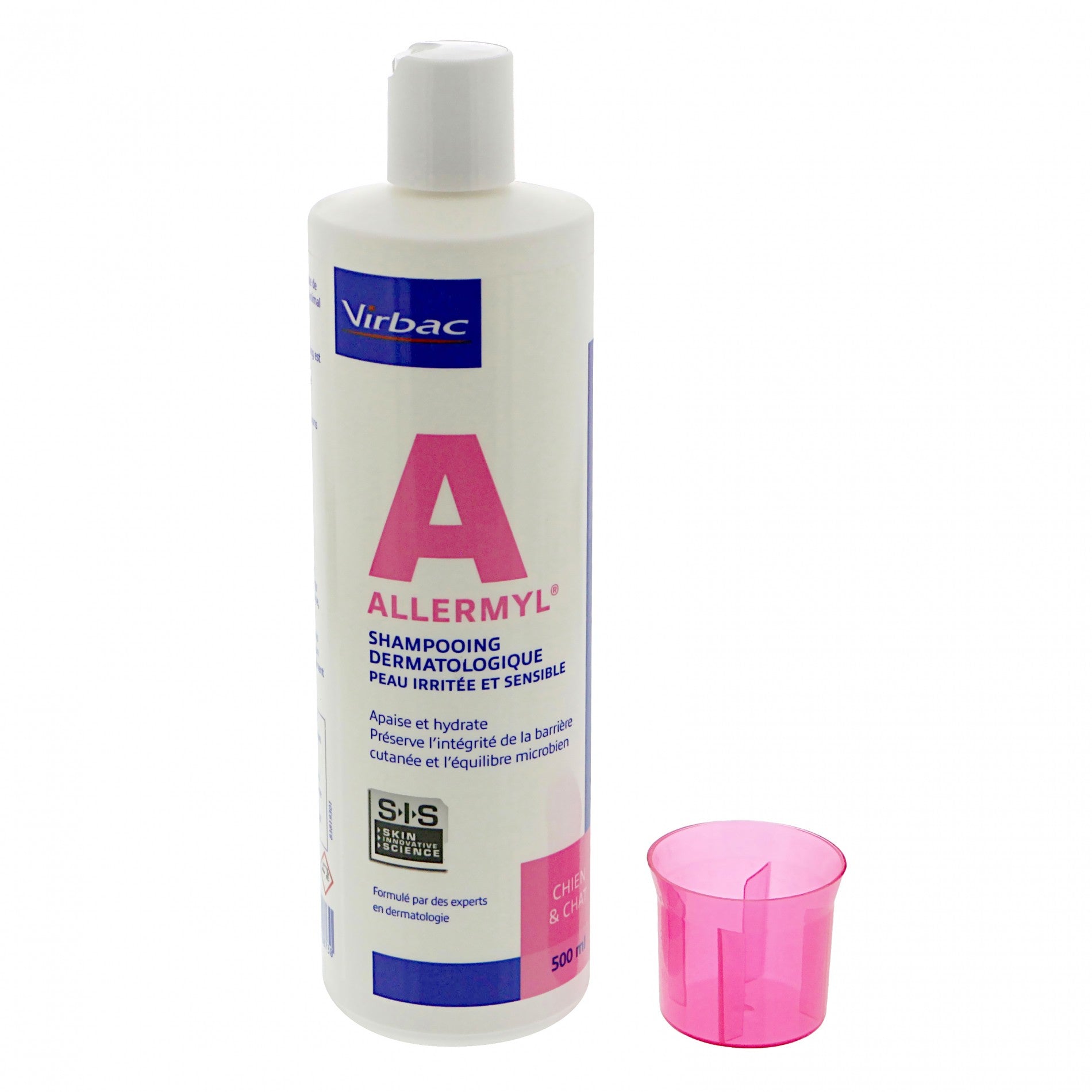 Le shampooing Allermyl de Virbac nettoie la peau, et est spécialement conçu pour le chien et le chat qui souffre d'un déséquilibre de la barrière cutanée, de démangeaisons, de peau sensible...