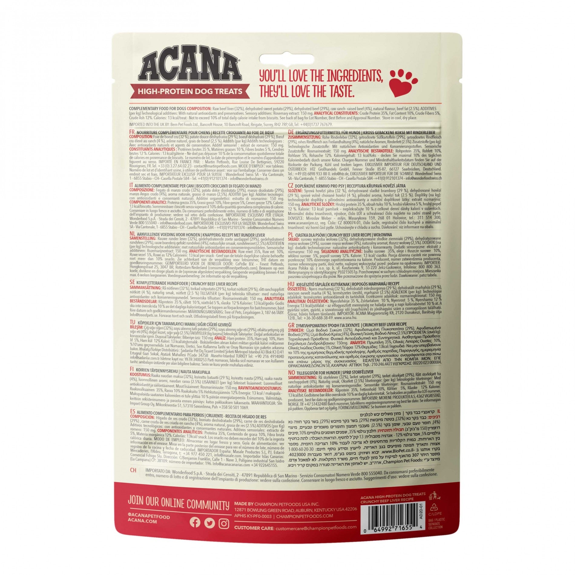 Les biscuits High Protein Crunchy Acana sont des friandises (aliment complémentaire) riches en protéines pour chien de tout âge et toute taille.