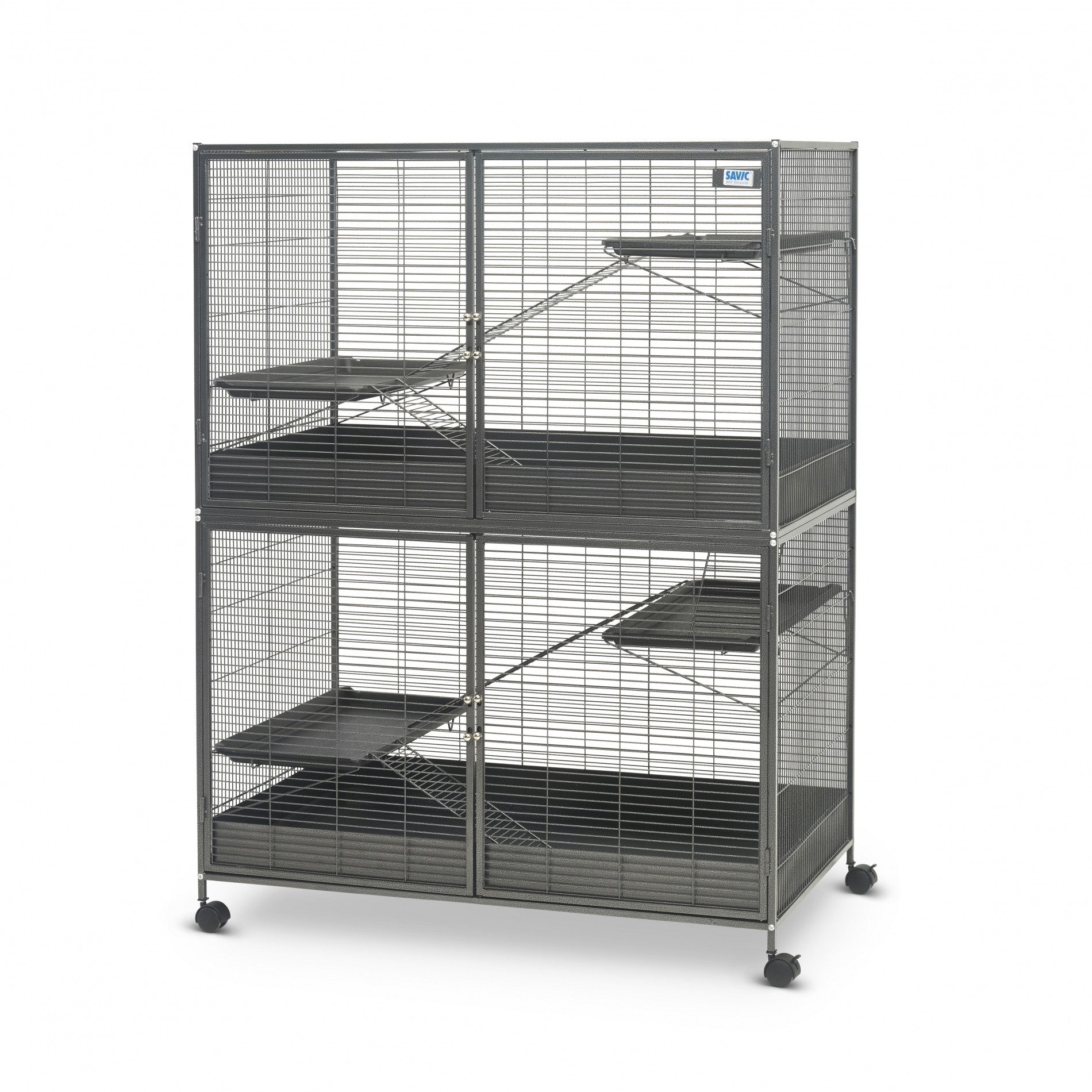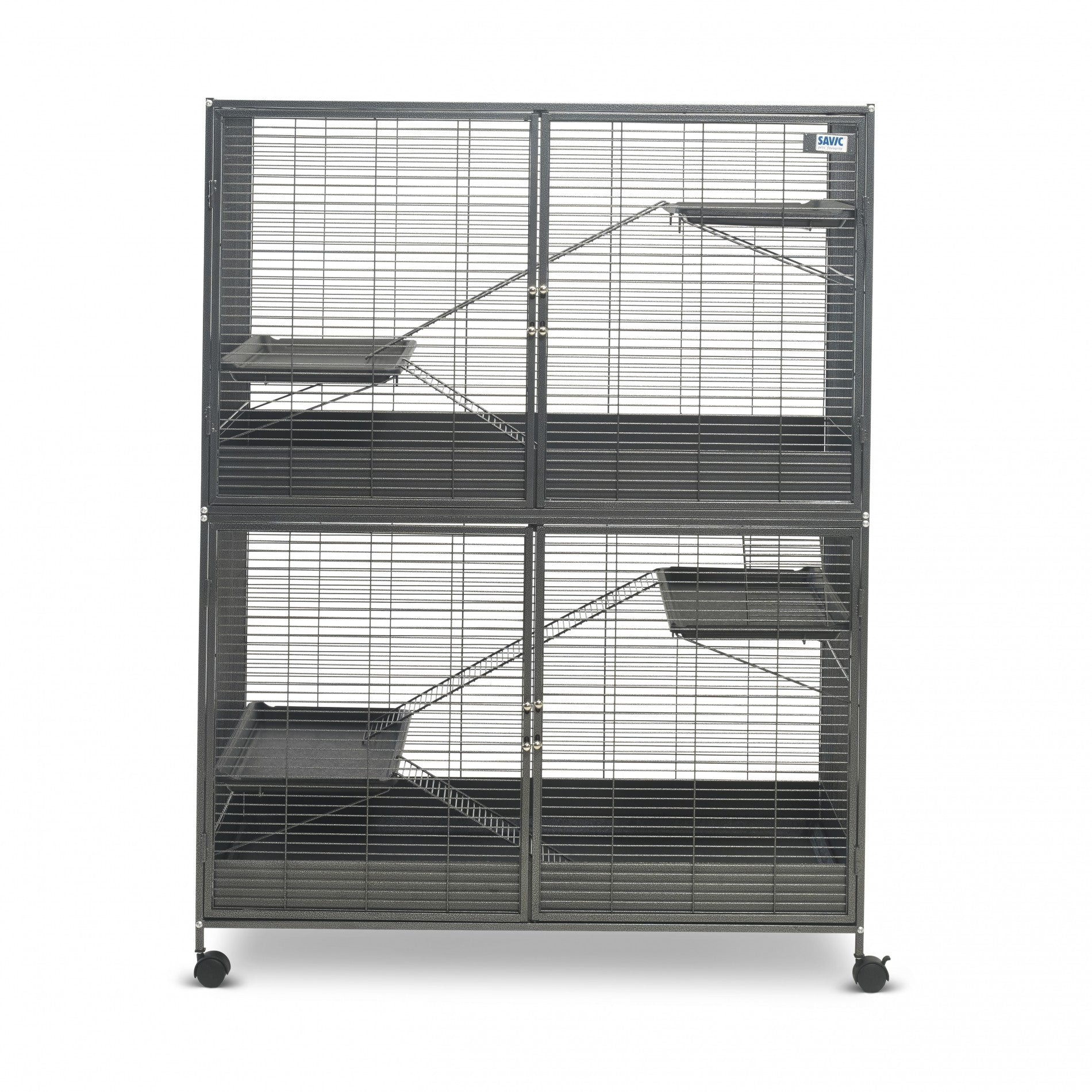 - 4 grandes portes permettent l'ouverture complète de la cage facilitant l'entretien et le nettoyage de la cage