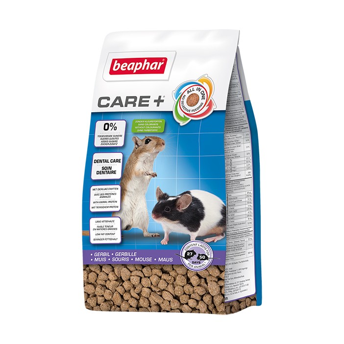 Care+ Souris et Gerbilles Beaphar est une alimentation sous forme d'extrudés d'excellente qualité. Chaque granulé a la même composition, ce qui empêche la sélection des aliments par votre souris ou votre gerbille.