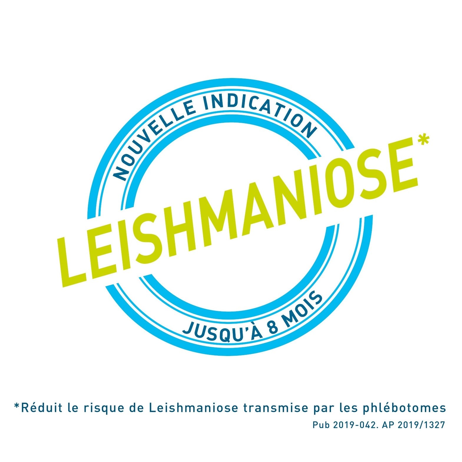 Il contribue également à réduire le risque d’infection par Leishmania infantum, responsable de la leishmaniose, jusqu’à 8 mois grâce à une protection contre les phlébotomes.