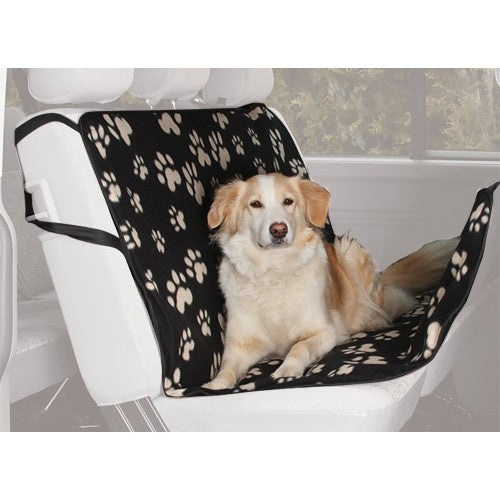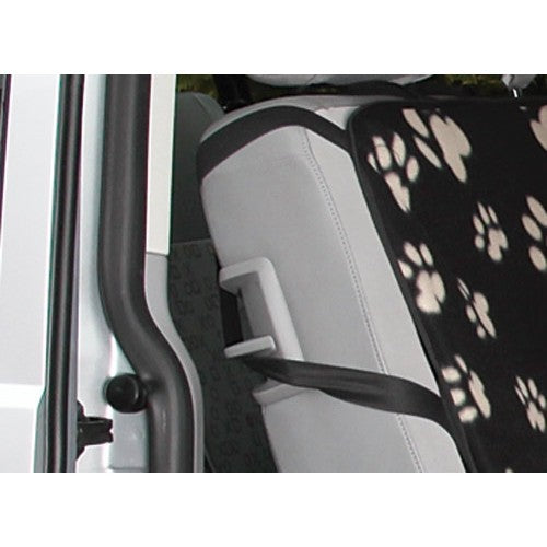 Grâce à cette couverture en nylon et fibres polaires avec motif pattes, votre chien sera bien installé sur la banquette arrière et votre voiture ne sera pas abîmée !