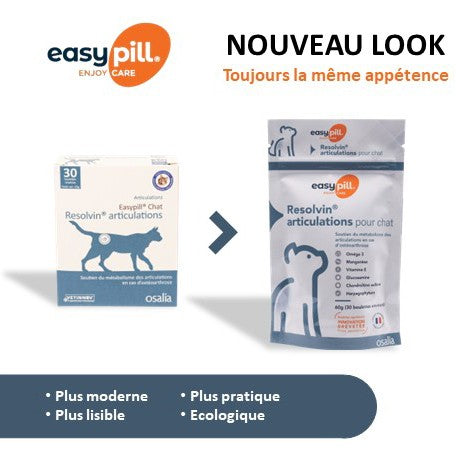 Le packaging de la gamme EASYPILL évolue en passant d’un format boite à un format sachet refermable. La transition vers les nouveaux emballages est en cours.
