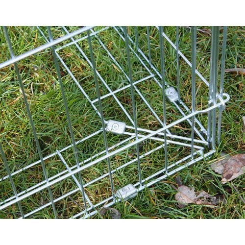 Cet enclos en acier zingué est équipé d’un dispositif anti-fugue. Ce système empêche votre lapin de creuser la terre sur le contour de l’enclos grâce à une extension de la grille parallèle au sol.
