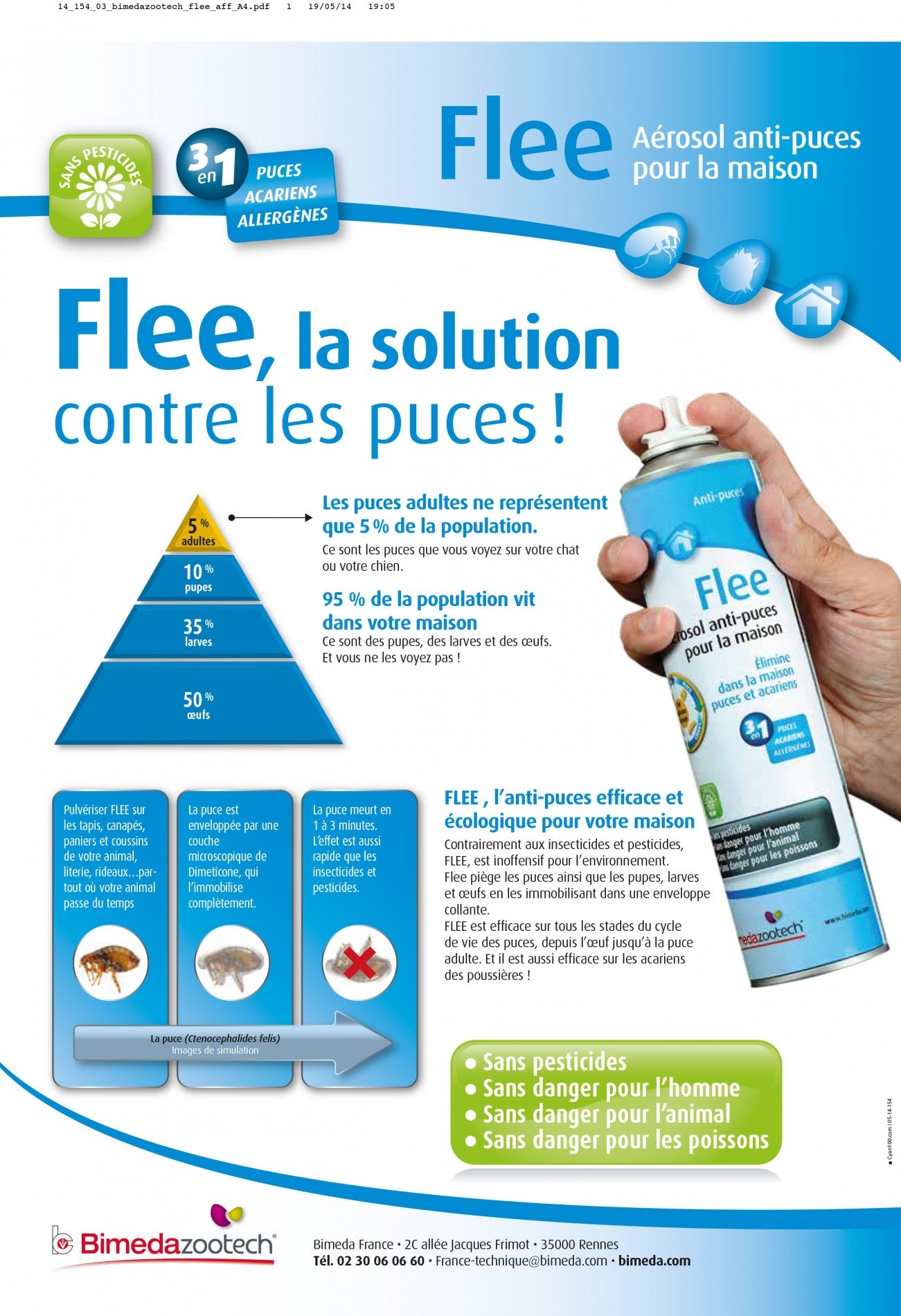 Flee est un aérosol anti-puces pour la maison qui permet d'éliminer tous les stades du cycle de vie des puces, depuis l'oeuf jusqu'à la puce adulte. Contrairement aux insecticides et pesticides, Flee est inoffensif pour l'environnement.