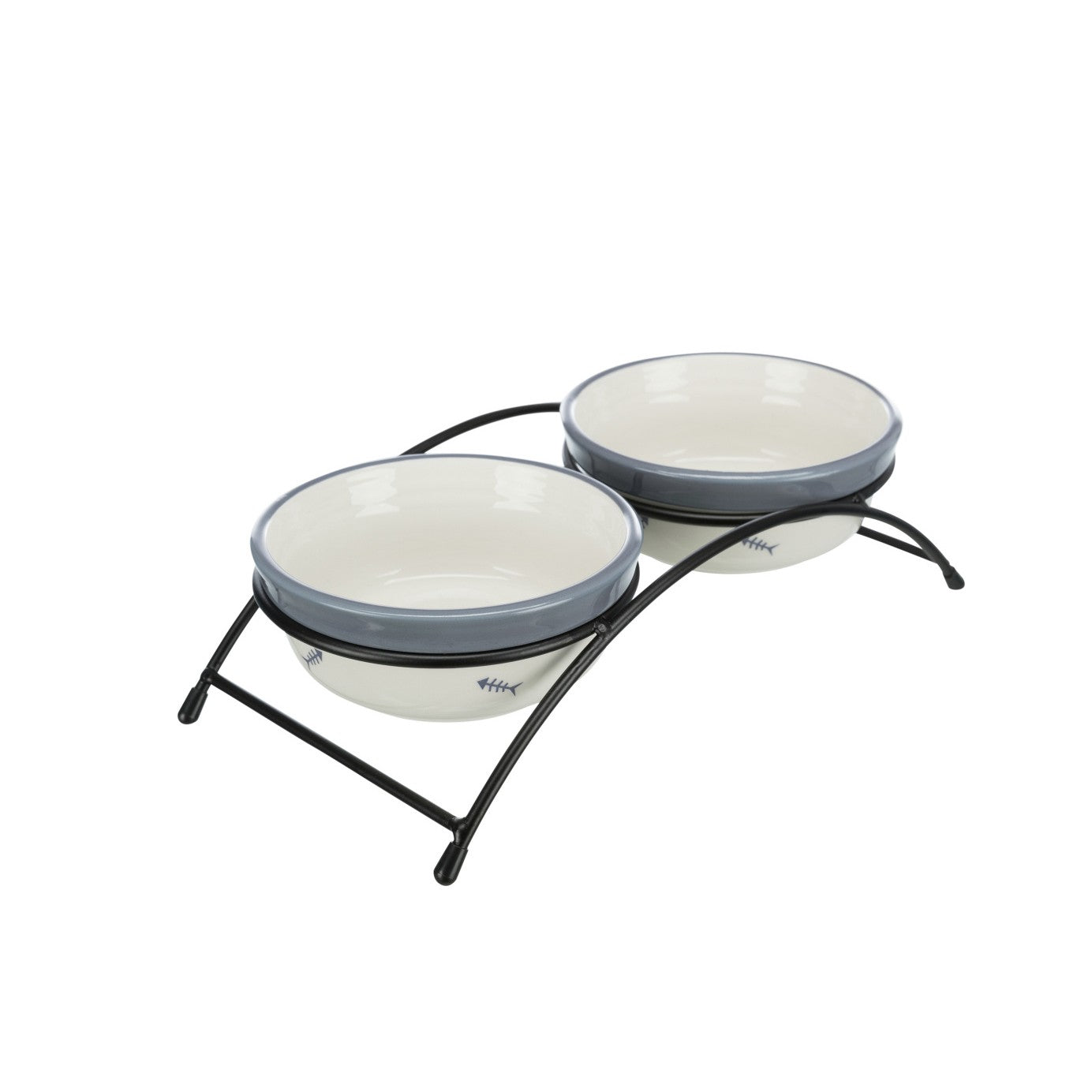 Très élégantes grâce au porte-écuelles en métal noir, ces gamelles avec des motifs poissons s'intègreront parfaitement dans votre intérieur. Les anneaux de fixation maintiennent les gamelles dans le porte-gamelles.