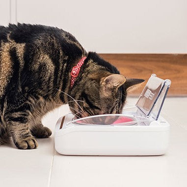 La gamelle hermétique SureFeed conserve la fraîcheur et la saveur des aliments. Elle fonctionne grâce à un détecteur de mouvement : lorsque l'appareil détecte la présence d'un animal (ou la vôtre), le couvercle s'ouvre.