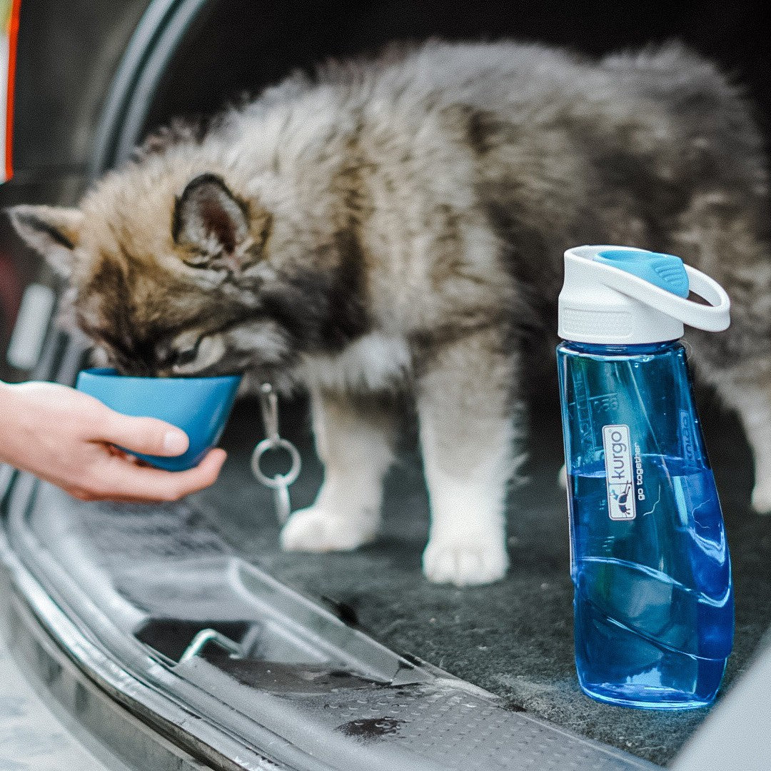 La gourde Bottle & Bowl permet de partager facilement votre réserve d'eau avec votre chien pendant vos escapades.