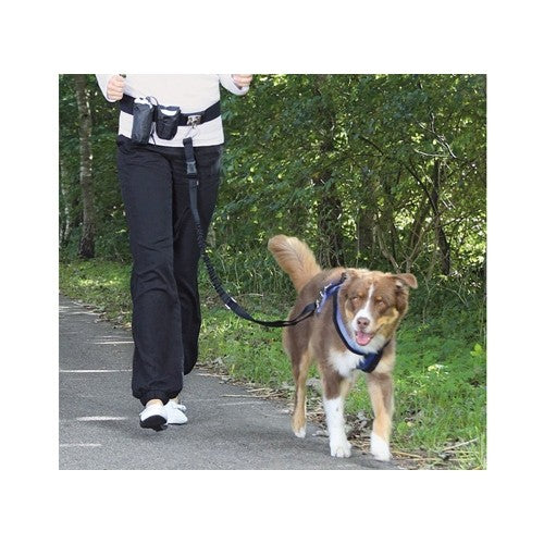 Cette laisse avec ceinture permet de garder les mains libres grâce à une ceinture élastique ventrale afin de pouvoir courir librement avec son chien.