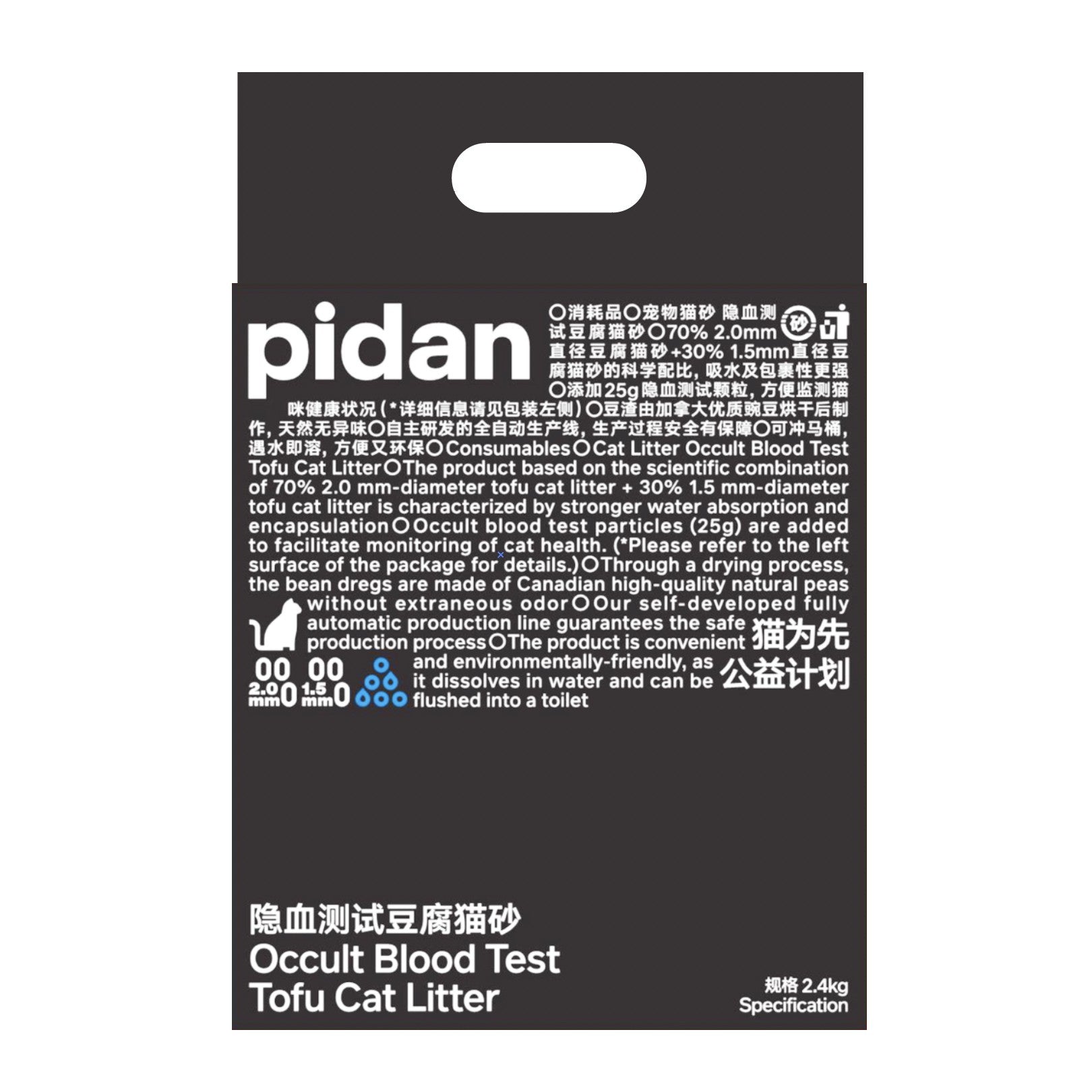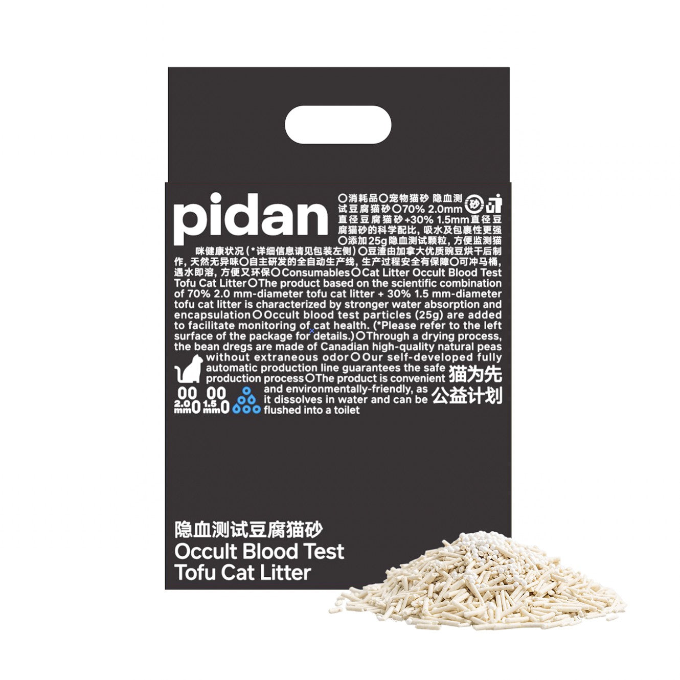 En plus d'être issu d'un matériau durable, la litière Tofu Pidan contient des petites particules qui révèlent la présence de sang dans les urines de votre chat.