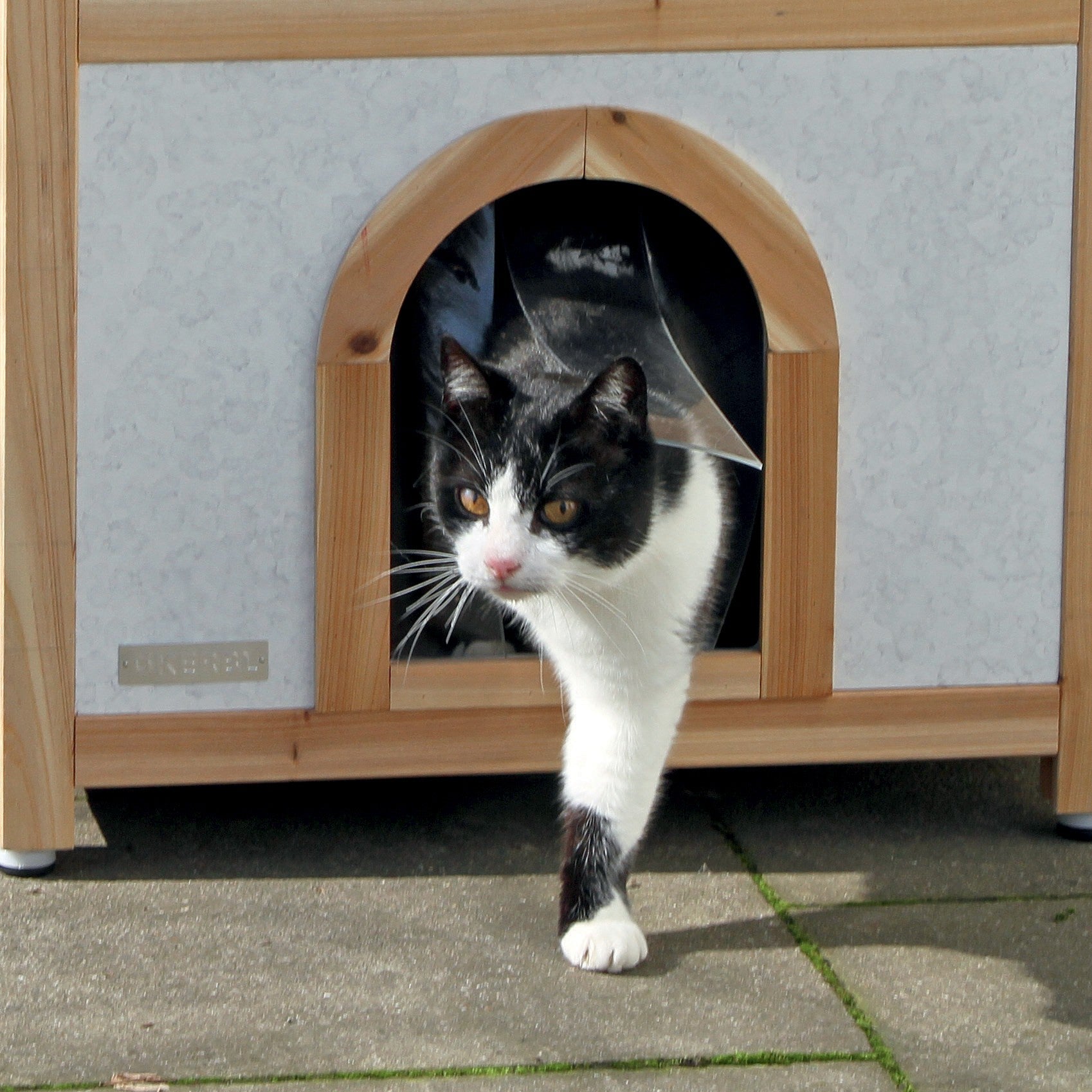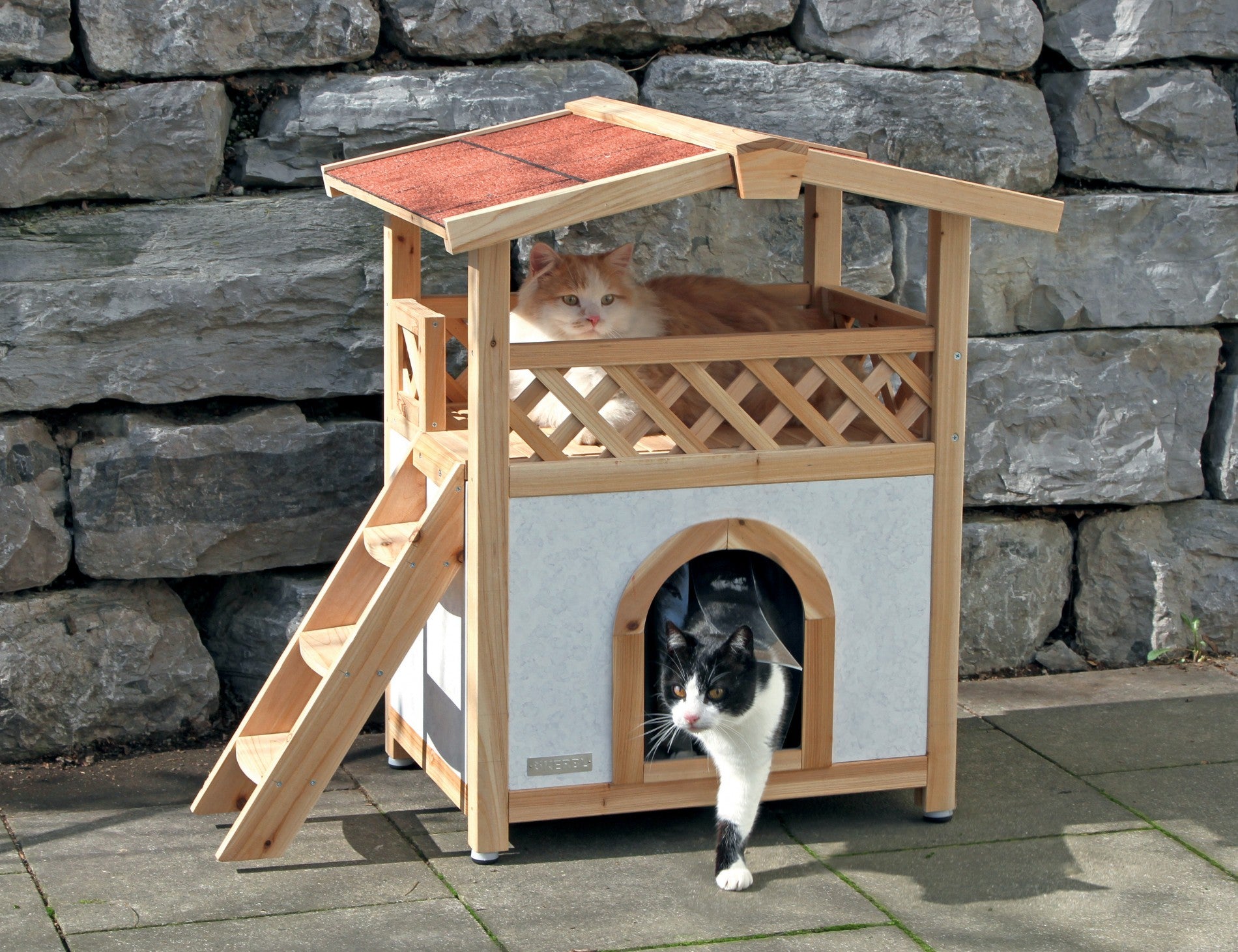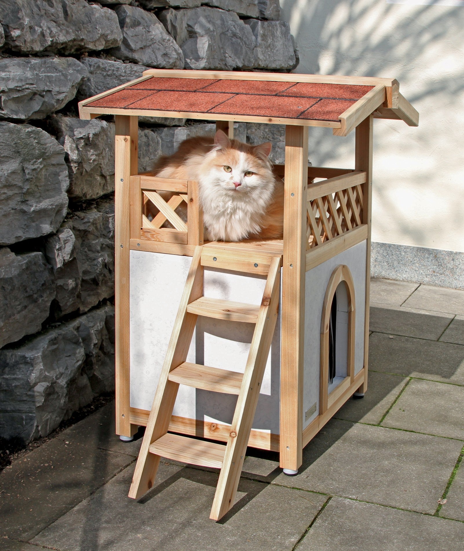 La maison pour chat Tyrol Alpin possède un niveau inférieur isolé du froid et de la chaleur et une agréable plateforme d'observation à l'étage.