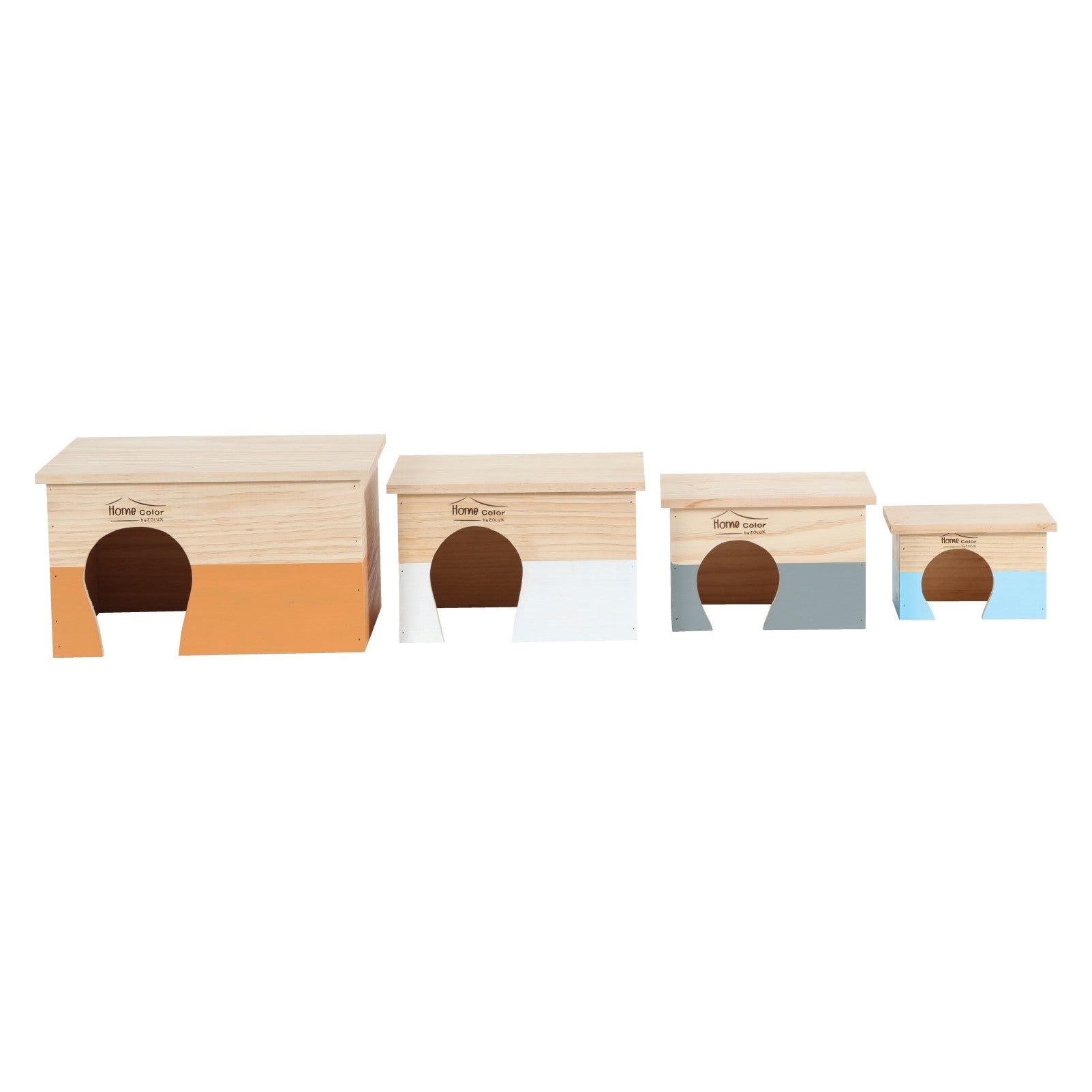 Cette maison en bois et de forme rectangulaire offrira un bel espace de jeu et de détente à votre hamster, souris ou autre petit rongeur.