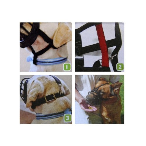 Le maintien en place de la muselière est garanti par des sangles ajustables rembourrées en néoprène présentant trois points de fixation pour plus de sécurité.