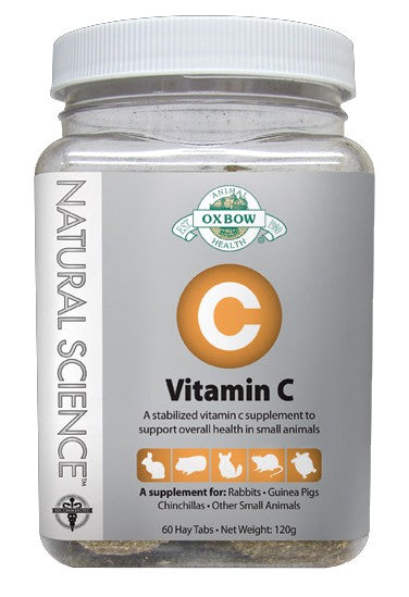 Natural Science - Vitamin C est un supplément riche en fibres à base de foin contenant de la vitamine C stabilisée indispensable pour les cobayes, et conseillée chez les autres petits animaux (lapin, chinchilla, rat et octodon) en périodes de stress, de maladie ou de récupération.