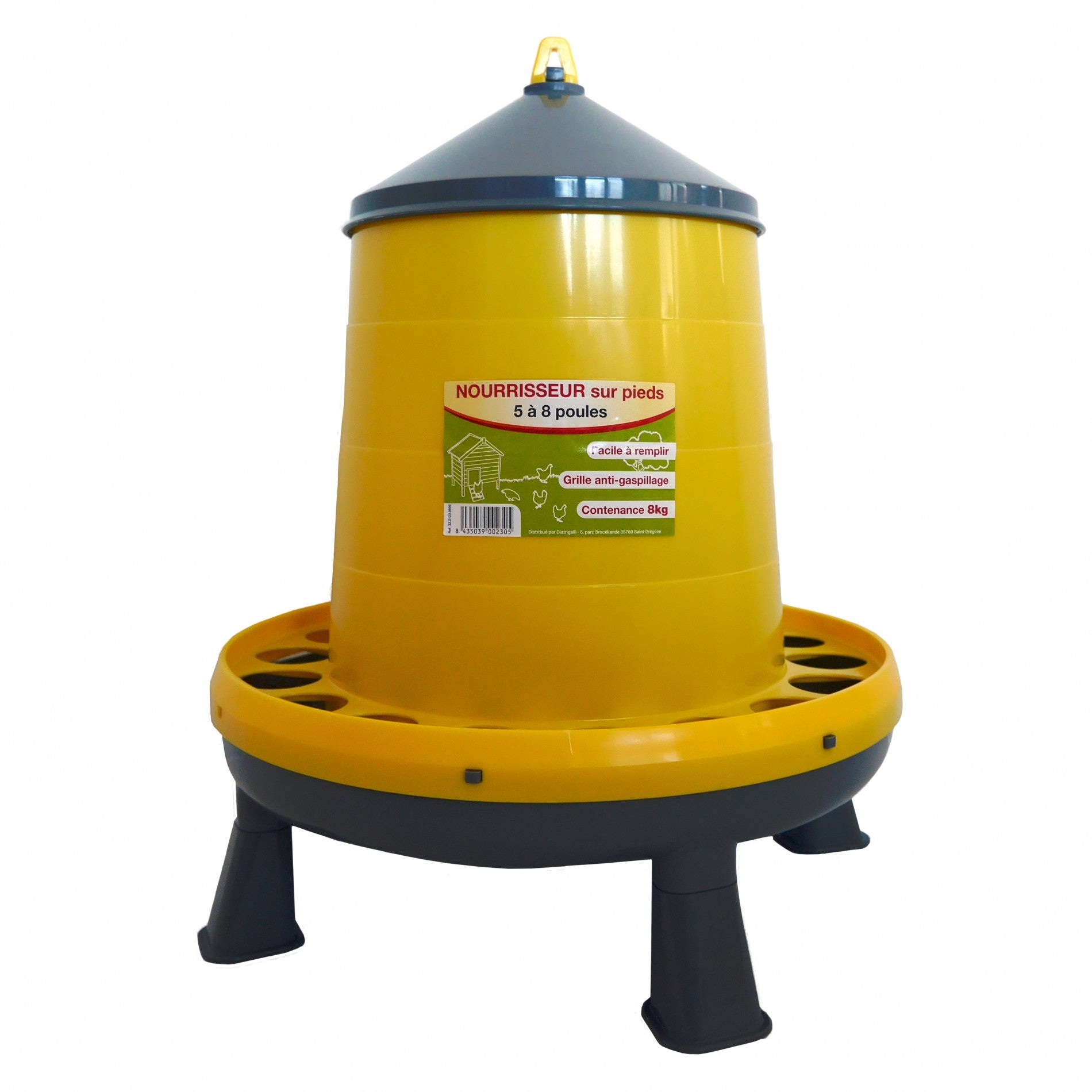 Le nourrisseur à trémie sur pied est l'accessoire de distribution de nourriture idéal pour votre poulailler.