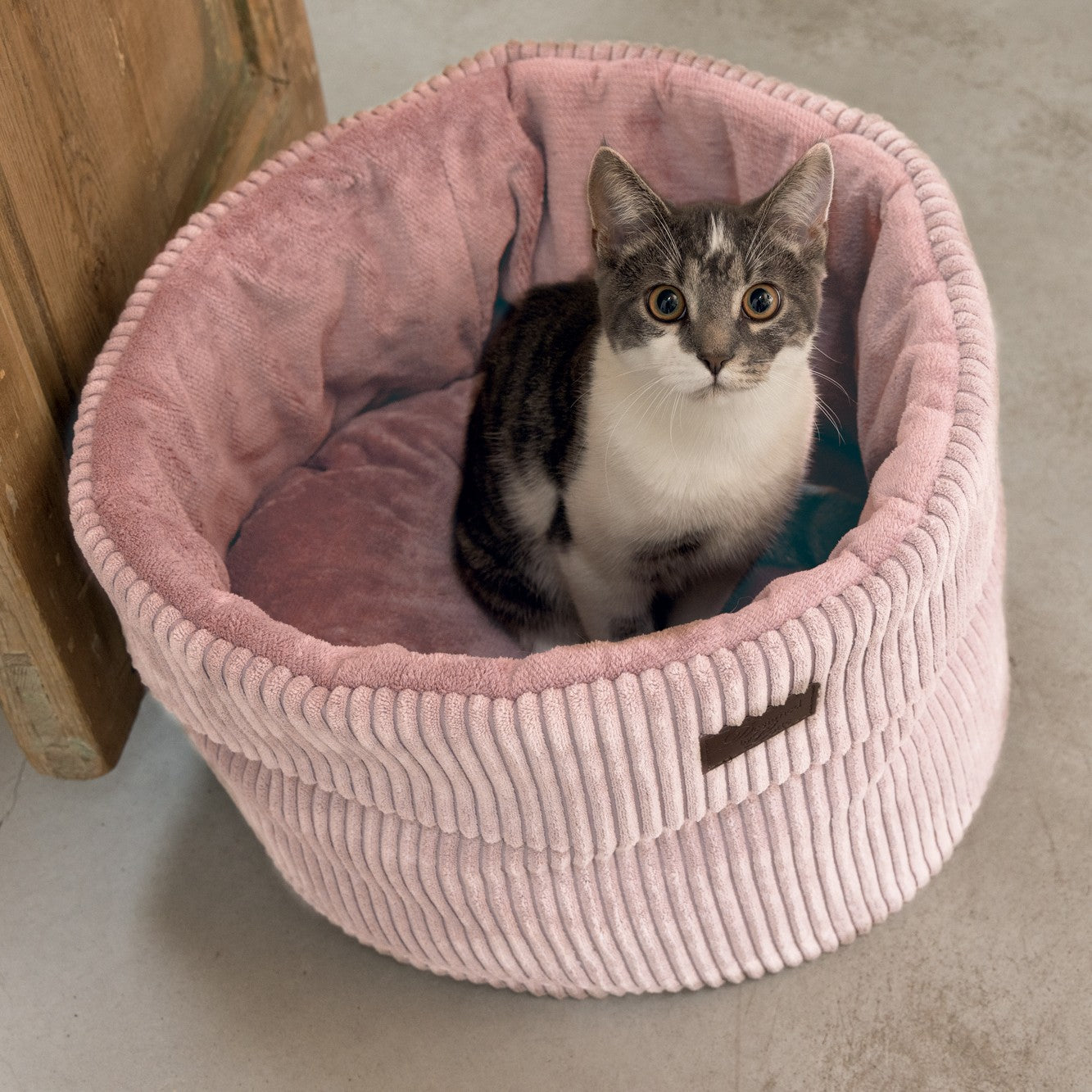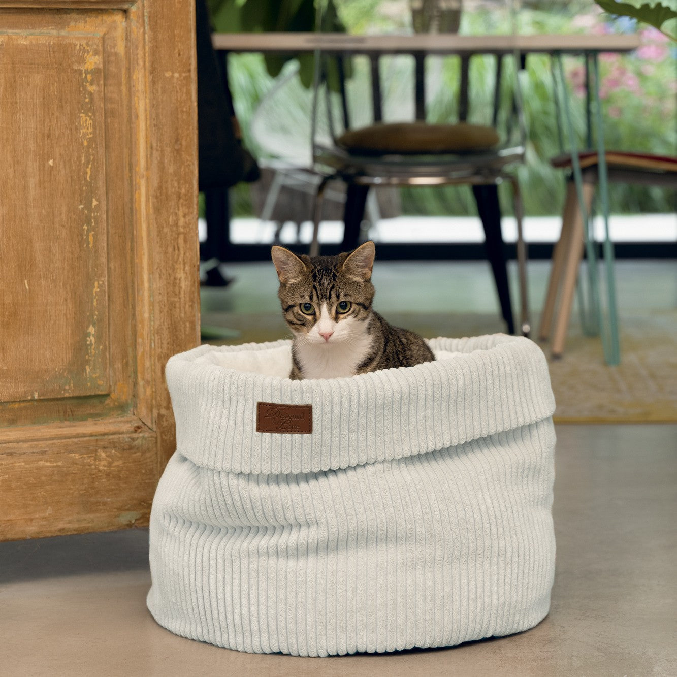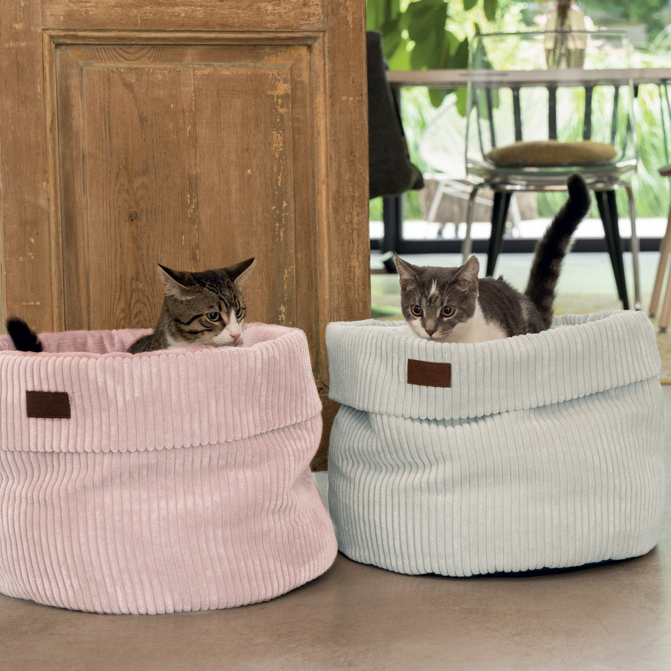 Pratique et élégant, le panier velours côtelé de chez Designed by Lotte est parfait pour ranger les jouets de votre chat ou lui offrir un couchage douillet et tendance !