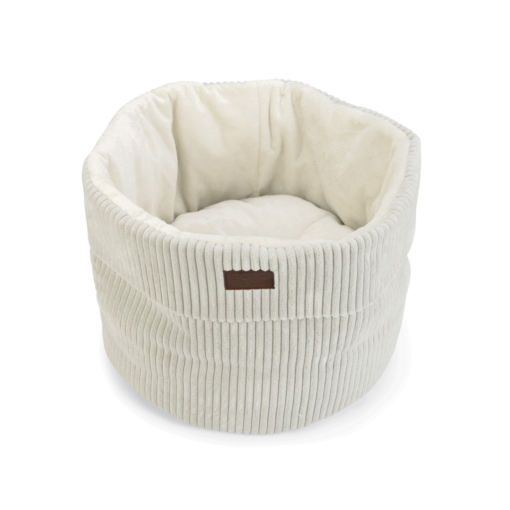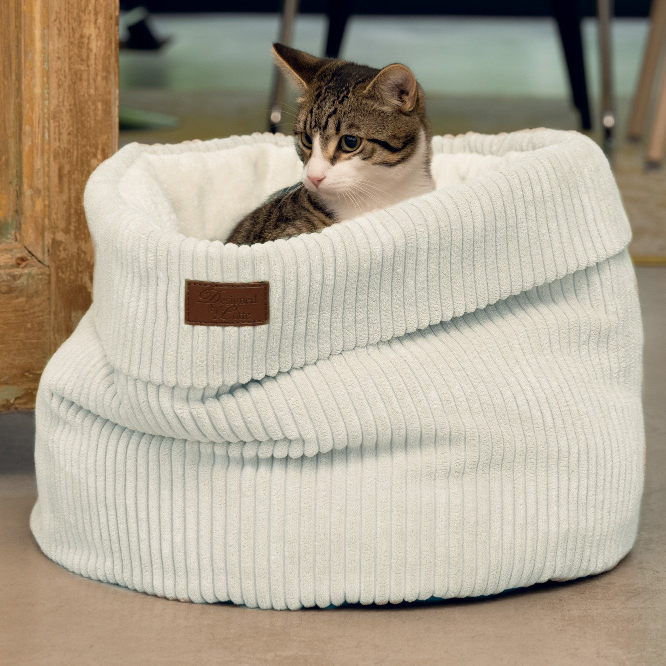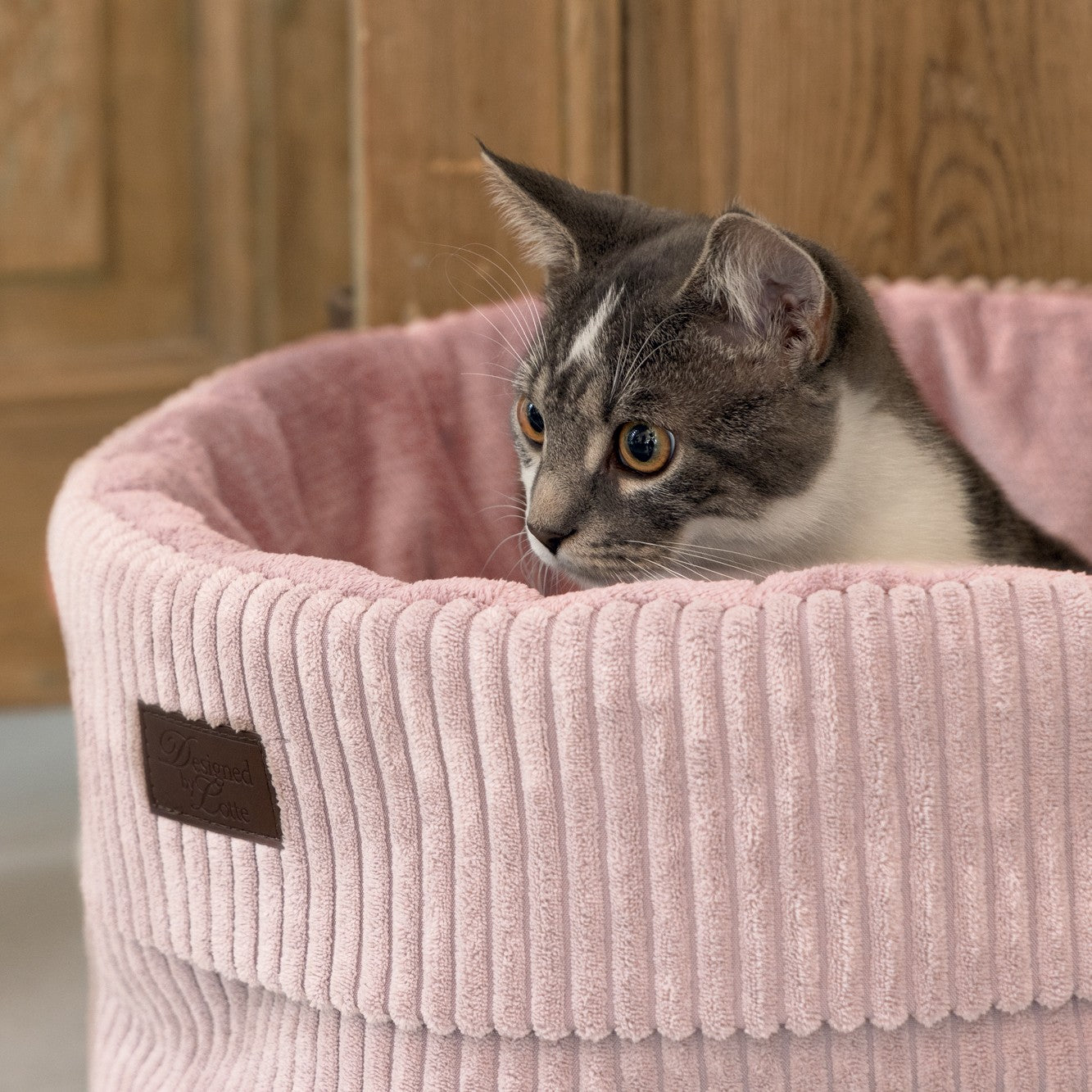 Pratique et élégant, le panier velours côtelé de chez Designed by Lotte est parfait pour ranger les jouets de votre chat ou lui offrir un couchage douillet et tendance !