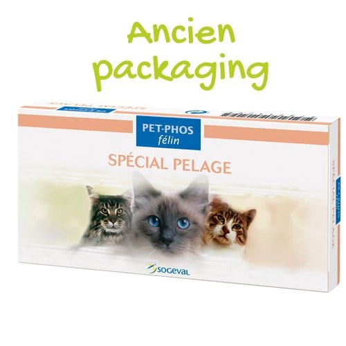Pet-Phos Pelage Chat est un complément alimentaire riche en acides gras essentiels et vitamines pour la santé de la peau et la beauté du pelage peut être réalisée en période de mue, lors de séborrhée, après une période de convalescence, chez l'animal âgé ou insuffisant rénal ou encore avant une exposition ou un concours.