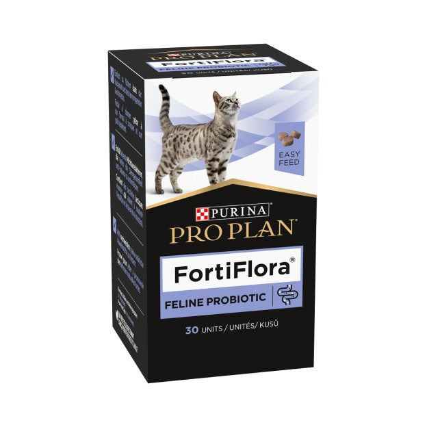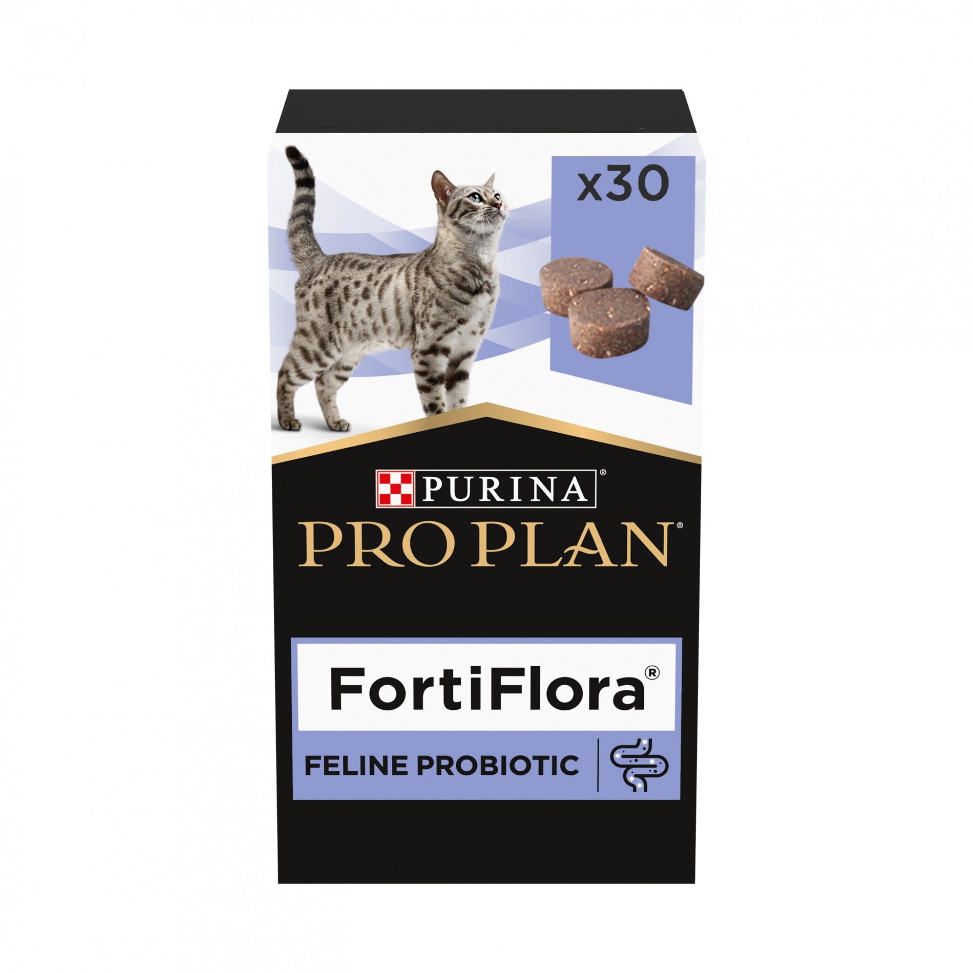 Pro Plan FortiFlora est un aliment complémentaire probiotique sous forme de savoureuses bouchées pour le chat de tout âge ayant des troubles de la digestion.