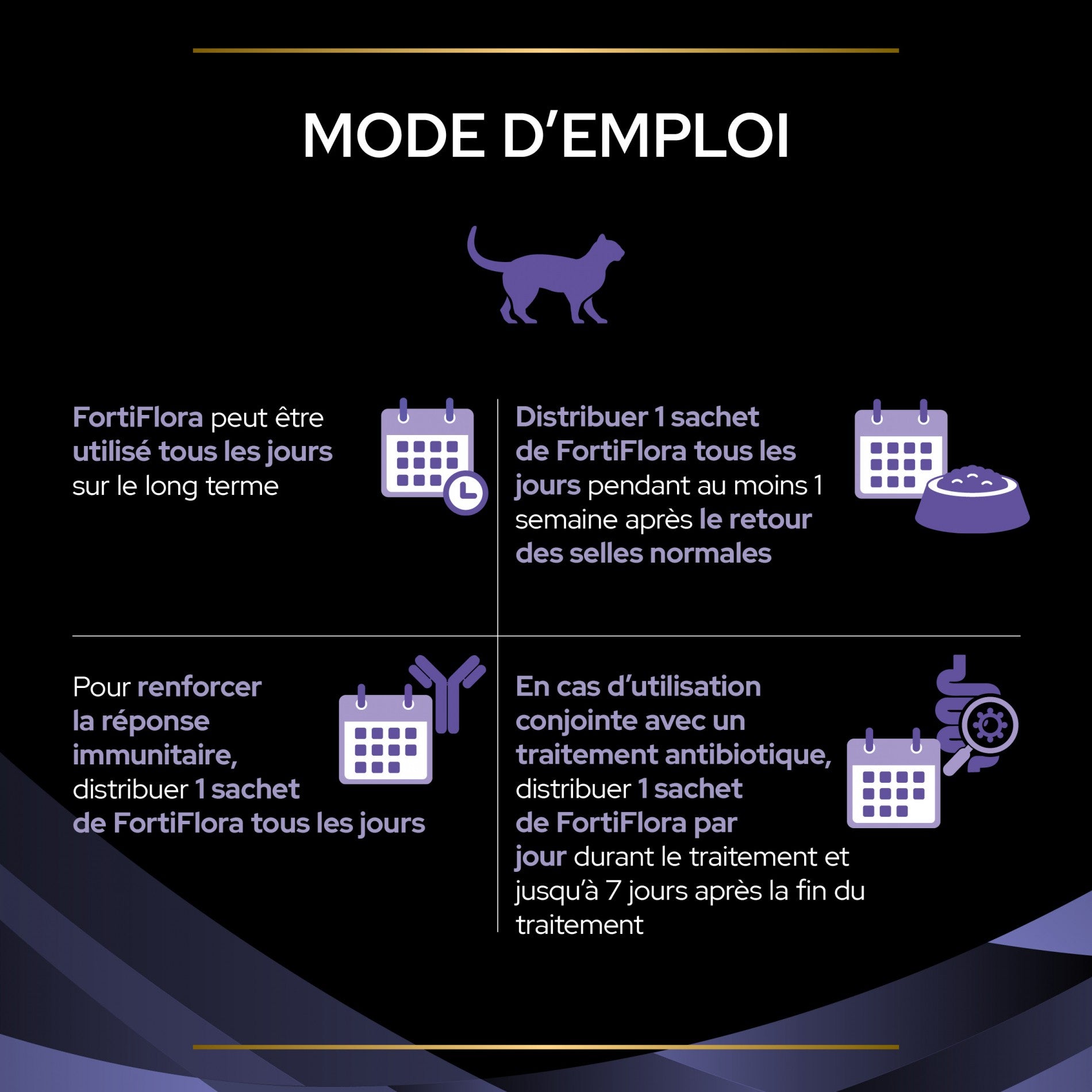 Remarque : une bouchée FortiFlora correspond à la consommation d'un Pro Plan FortiFlora en Poudre - Probiotiques pour chat.