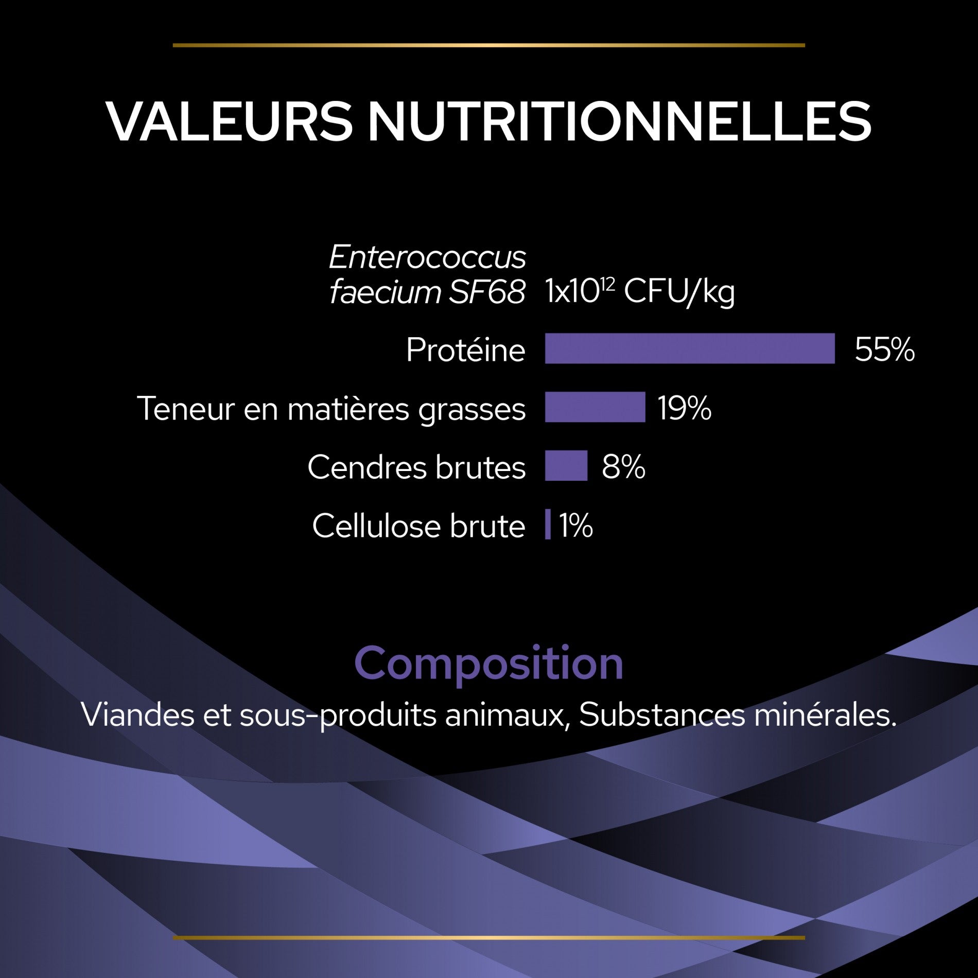 Pro Plan FortiFlora aide à retrouver ou maintenir l’équilibre du microbiome intestinal en multipliant le nombre de bonnes bactéries dans l’intestin et en luttant contre les bactéries potentiellement dangereuses ainsi que les agents pathogènes, mais aide aussi à renforcer le système immunitaire.