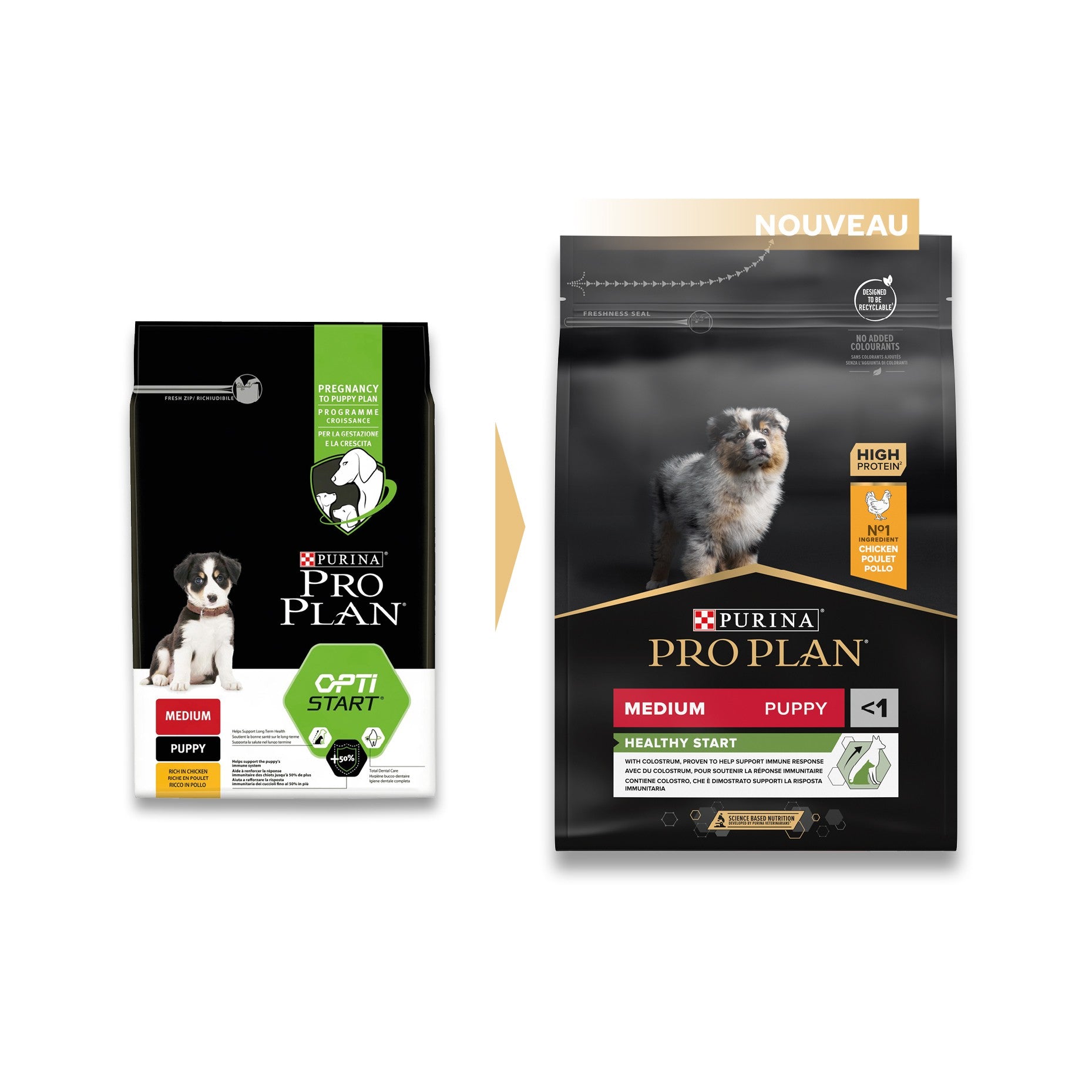 Les croquettes PRO PLAN Healthy Start Medium Puppy sont parfaitement adaptées aux besoins des chiots de race moyenne (poids adulte entre 10 et 25 kg) pour le bien être et la santé.