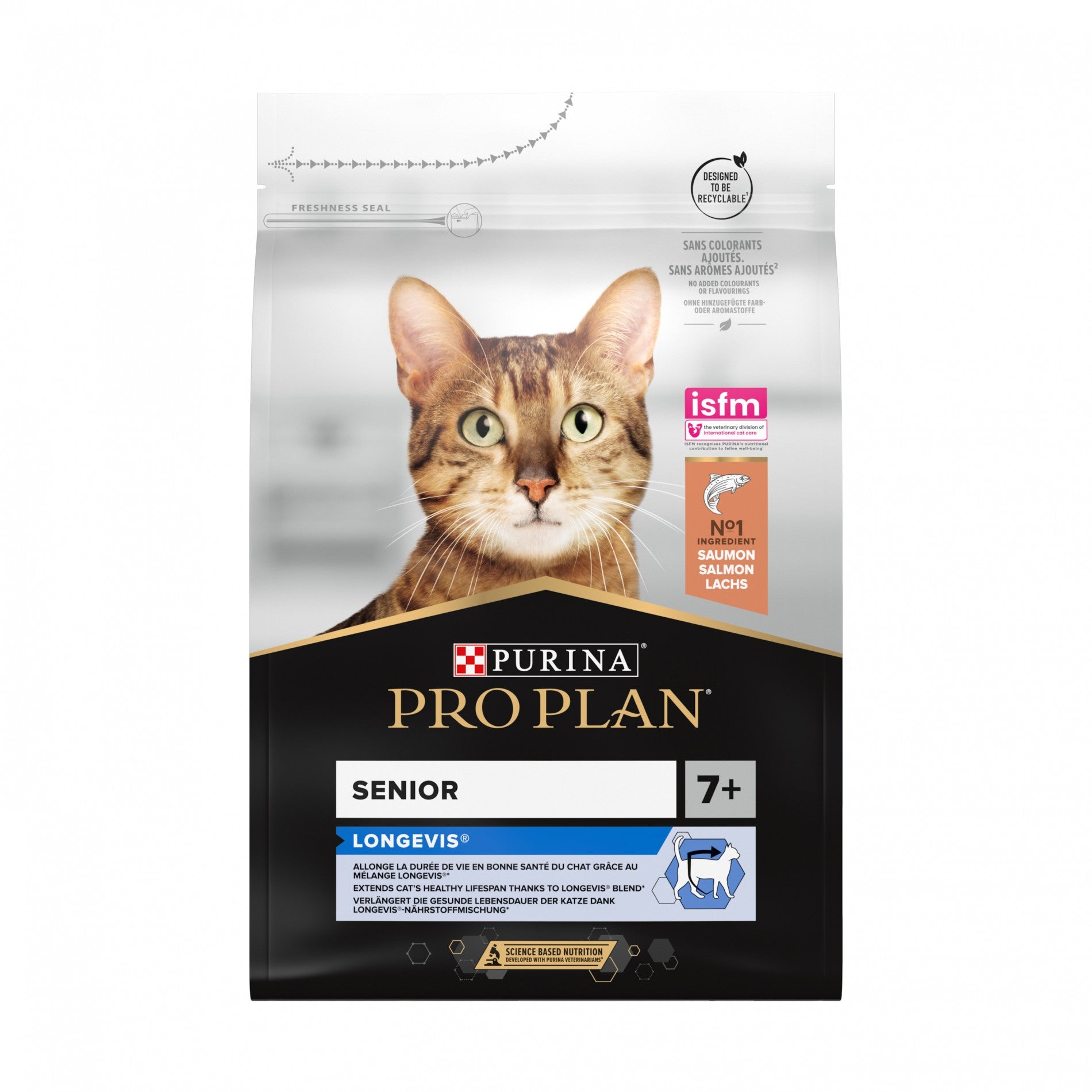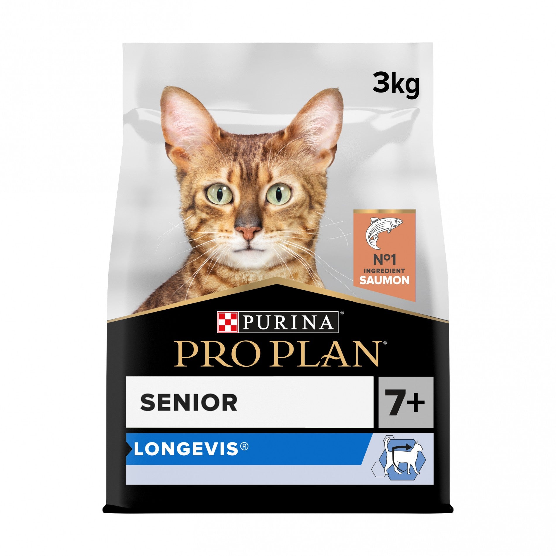 L'aliment PRO PLAN Longevis Senior au saumon est (7+) est un aliment pour chats de plus de 7 ans qui contient une formulation Longevis prouvée pour allonger l'espérance de vie et améliorer la qualité de vie.