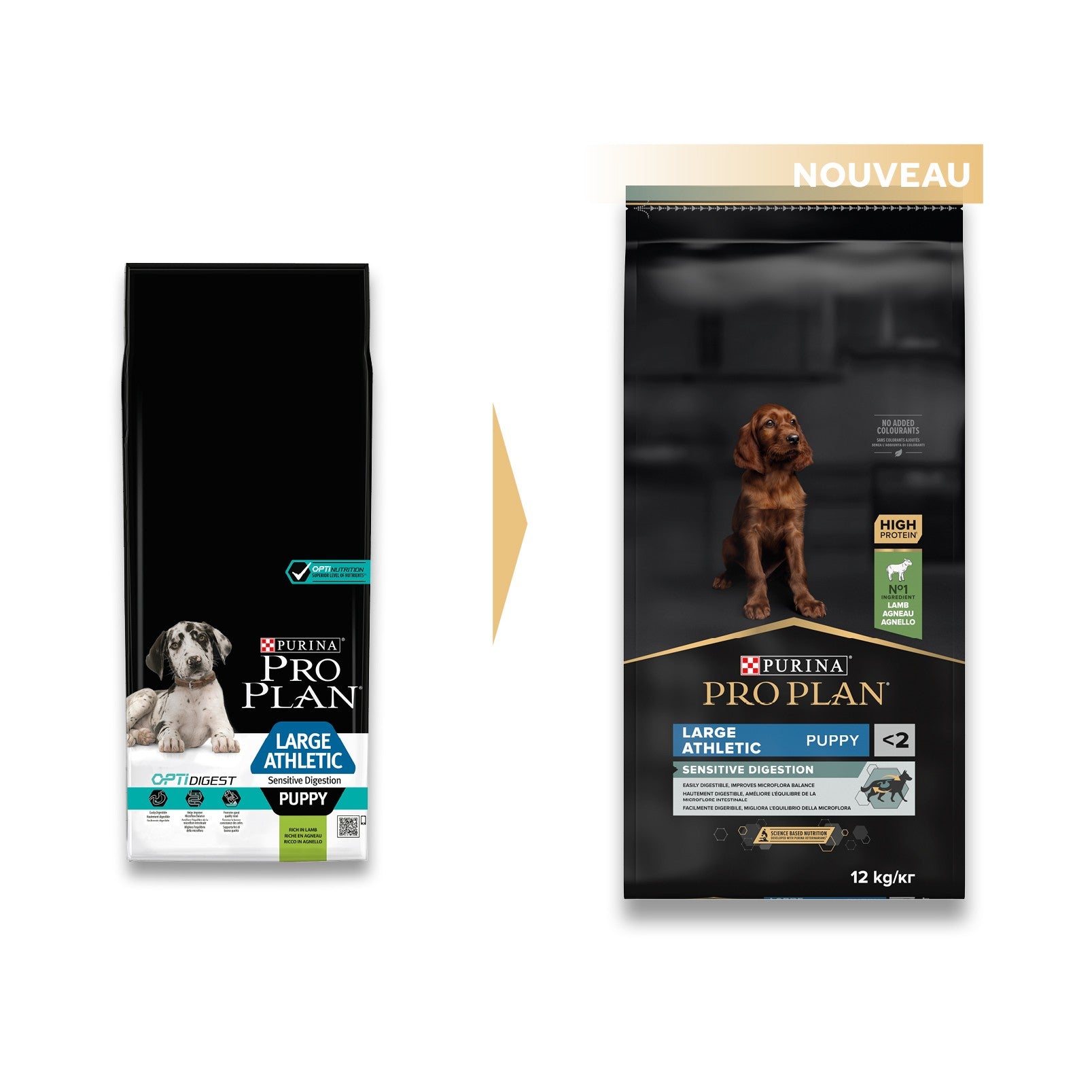 La formule PRO PLAN Sensitive Digestion Large Athletic Puppy à l'agneau est une combinaison de nutriments efficace pour procurer à votre chiot de grande race des bienfaits ciblés soutenant sa bonne santé, à chaque étape de sa vie et pour chaque besoin spécifique.
