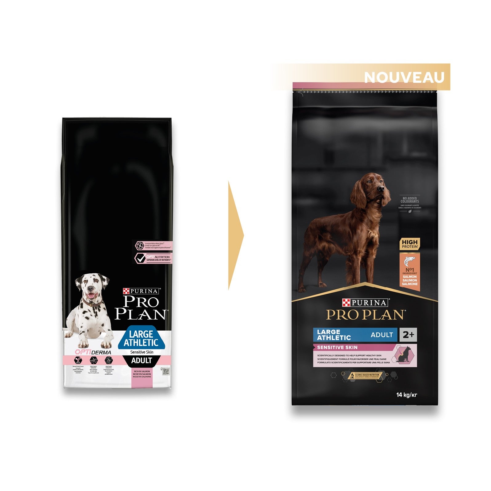 Les croquettes pour chiens PRO PLAN Sensitive Skin Large Athletic Adult sont conçues pour répondre aux besoins des chiens adultes de grande race (plus de 25 kg) de morphologie athlétique (cônique) et souffrant de sensibilité cutanée.