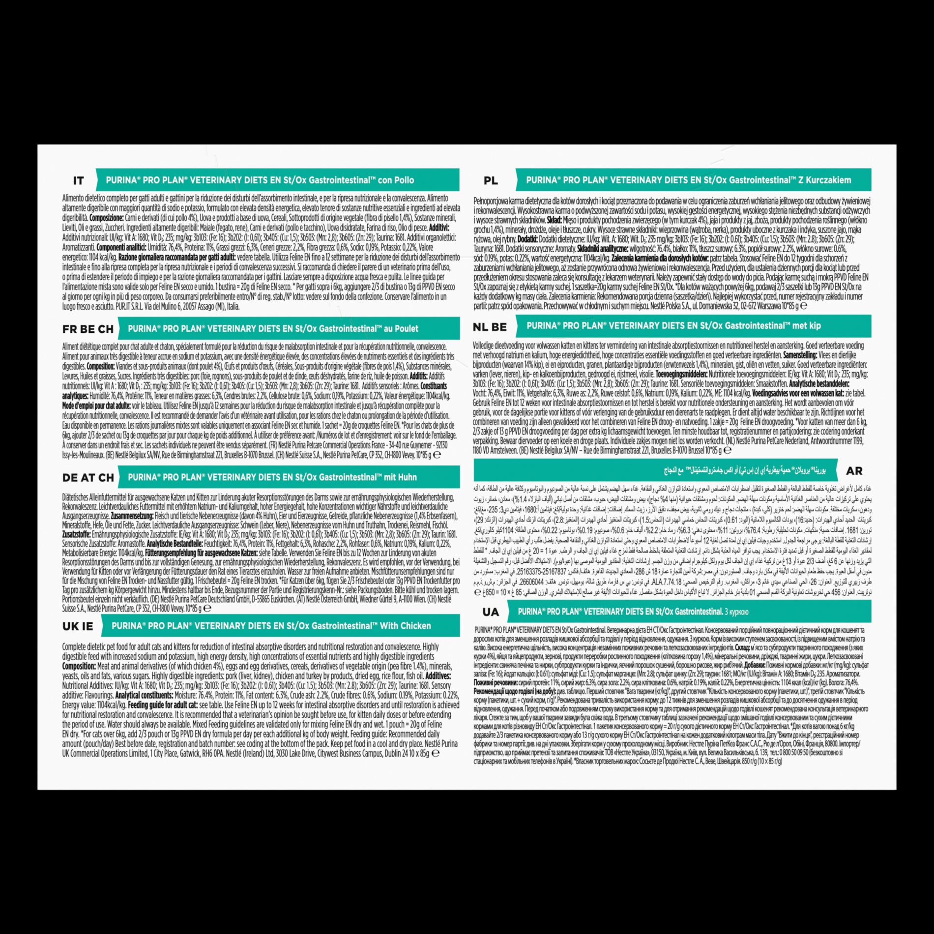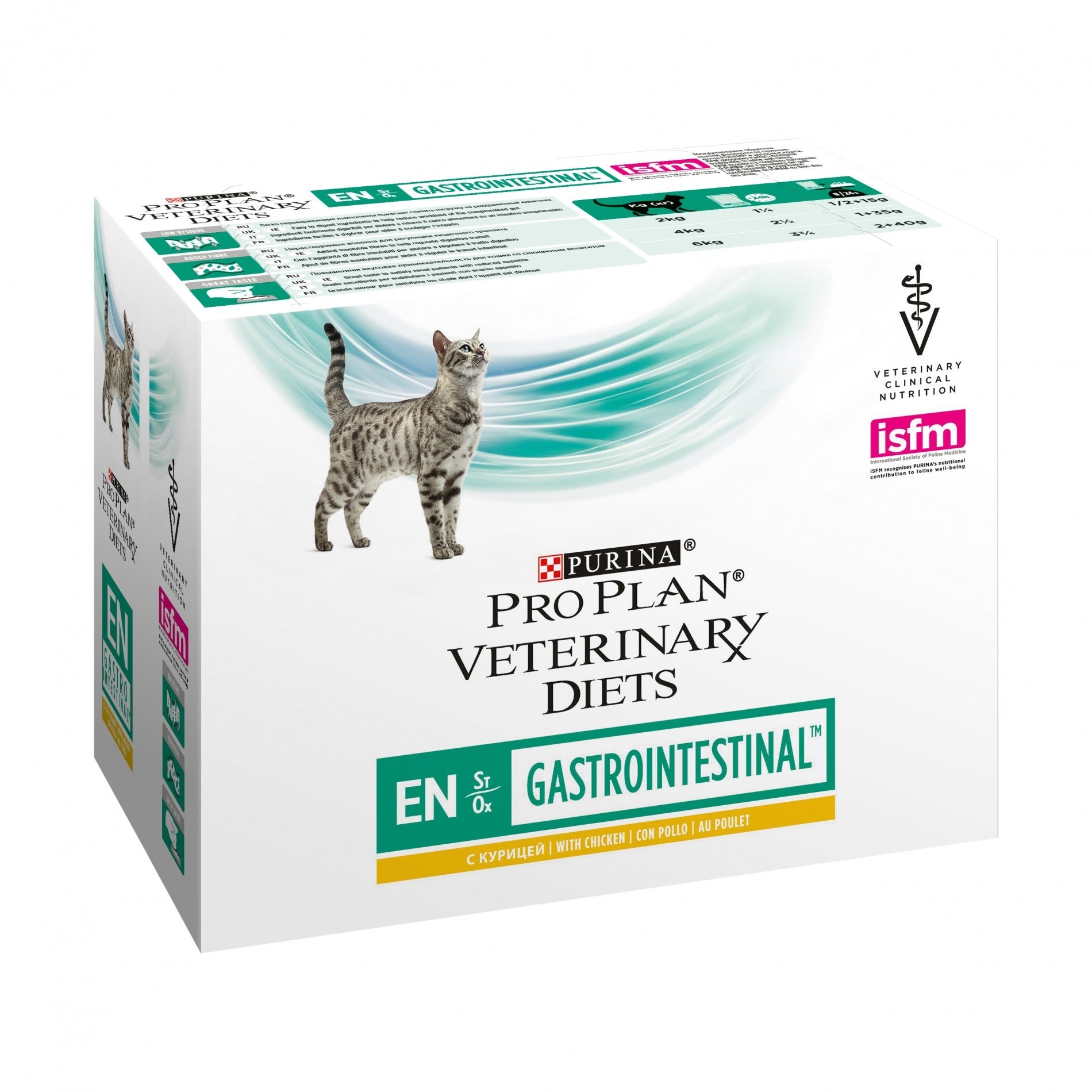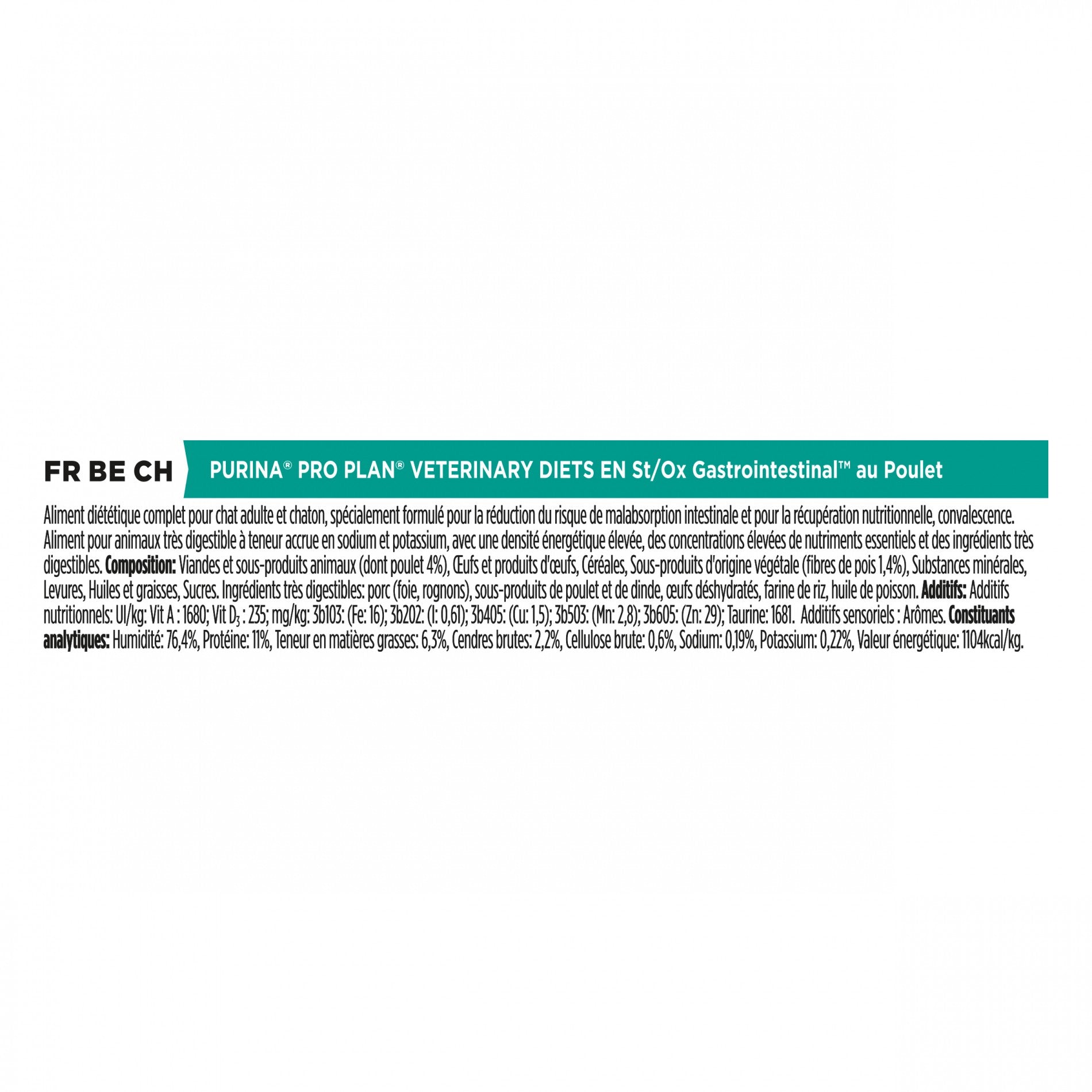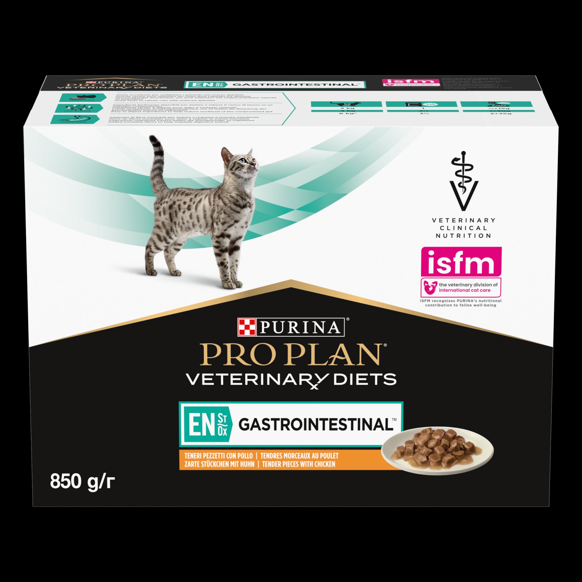 Pro Plan Veterinary Diets EN St/Ox Gastrointestinal est un aliment complet sous forme de sachets de pâtée en bouchées, élaboré pour la prise en charge des troubles intestinaux du chat et du chaton.