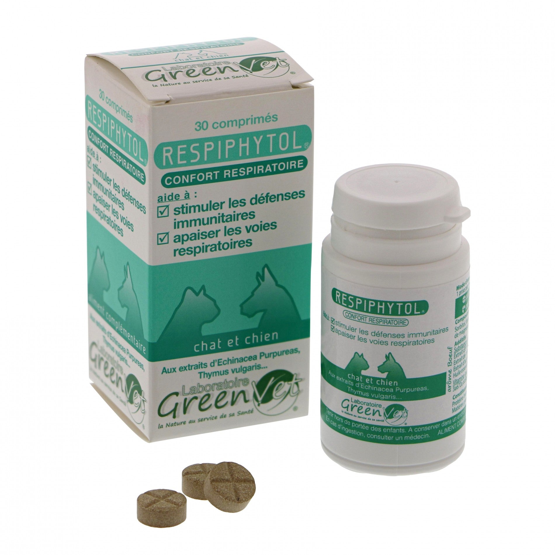 Respiphytol est un aliment complémentaire à base de plantes adoucissantes et expectorantes (Echynacée et thym) et de propolis, qui aident à soulager de manière efficace les troubles respiratoires causés par diverses affections : toux, toux de chenil, rhinite, encombrement des bronches, autres affections ORL...