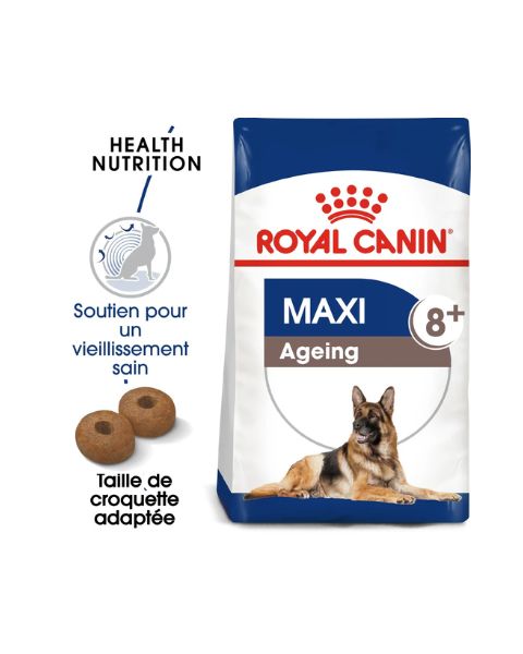 Les croquettes ROYAL CANIN® Maxi Ageing 8+ sont spécialement conçues pour répondre aux besoins nutritionnels de votre chien adulte de grande taille, de plus de 8 ans et pesant entre 26 et 44 kg.