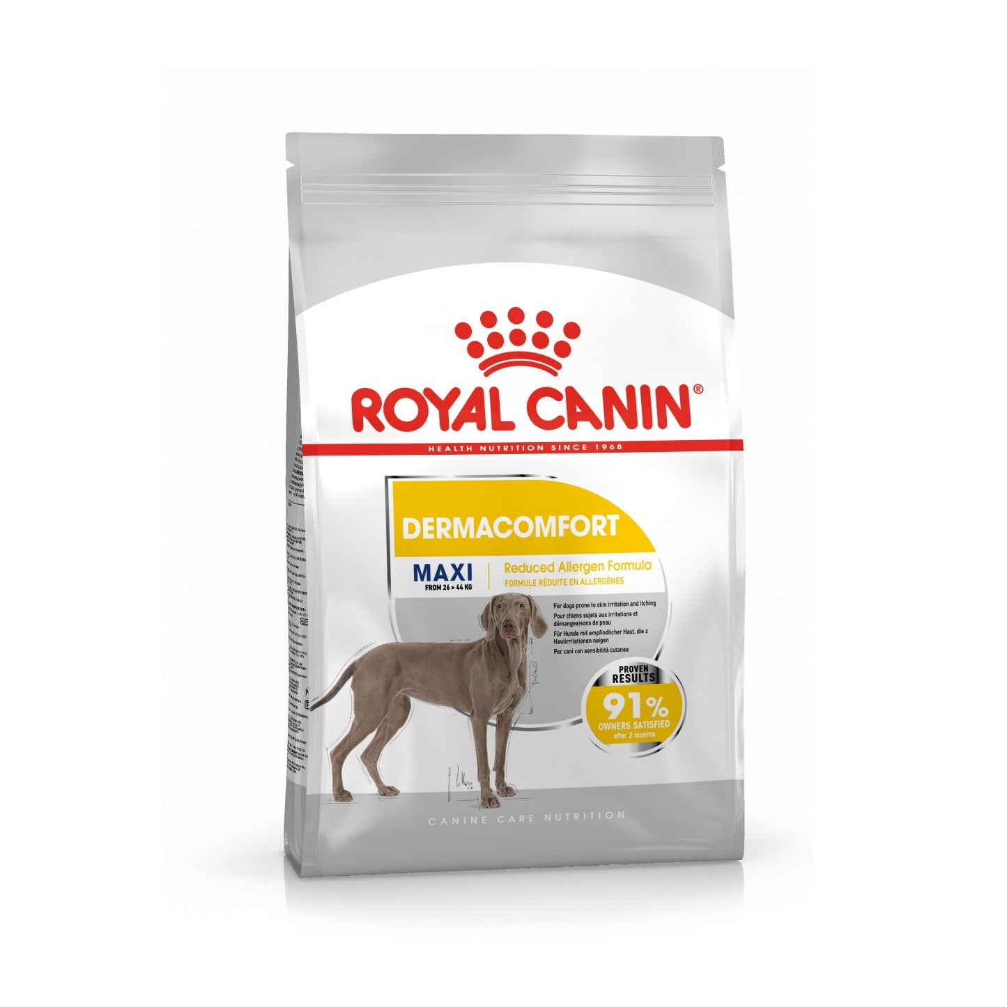 Votre chien souffre de démangeaisons et d'irritations cutanées ? Offrez-lui un soulagement immédiat avec ROYAL CANIN® Dermacomfort Maxi, une alimentation spécialement formulée pour les chiens de grande taille (26-44 kg) sujets aux sensibilités cutanées.
