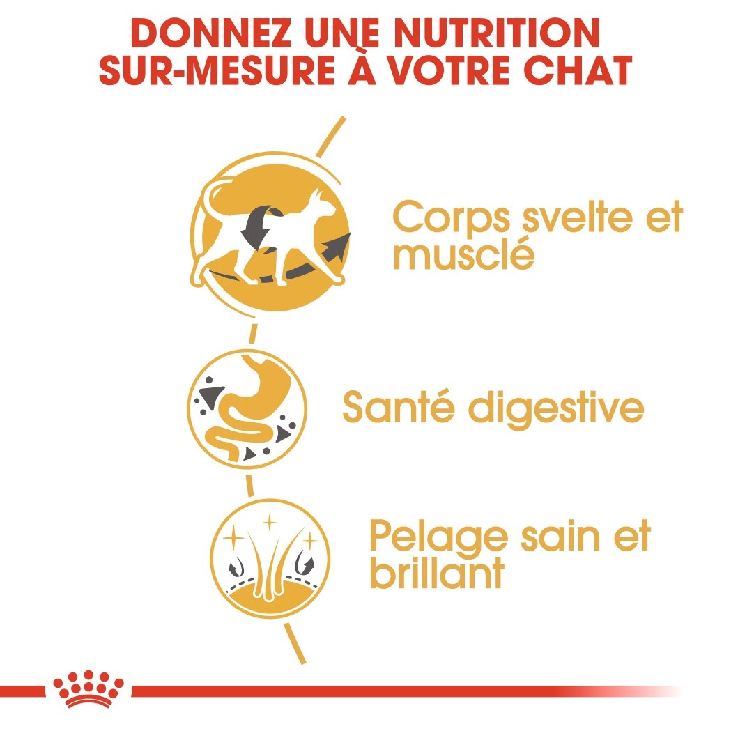 ROYAL CANIN® Siamese Adult est une alimentation complète, spécialement formulée pour répondre aux besoins nutritionnels des chats Siamois adultes, âgés de plus d’un an.