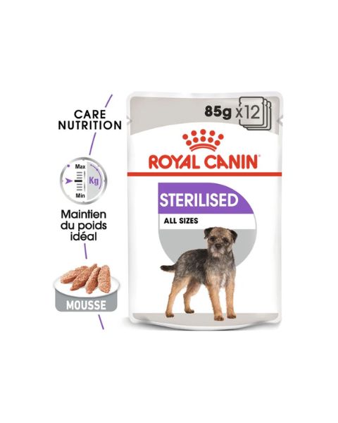 Les sachets fraîcheur ROYAL CANIN® Sterilised conviennent aux chiens adultes stérilisés de plus de 10 mois ayant tendance à prendre du poids.