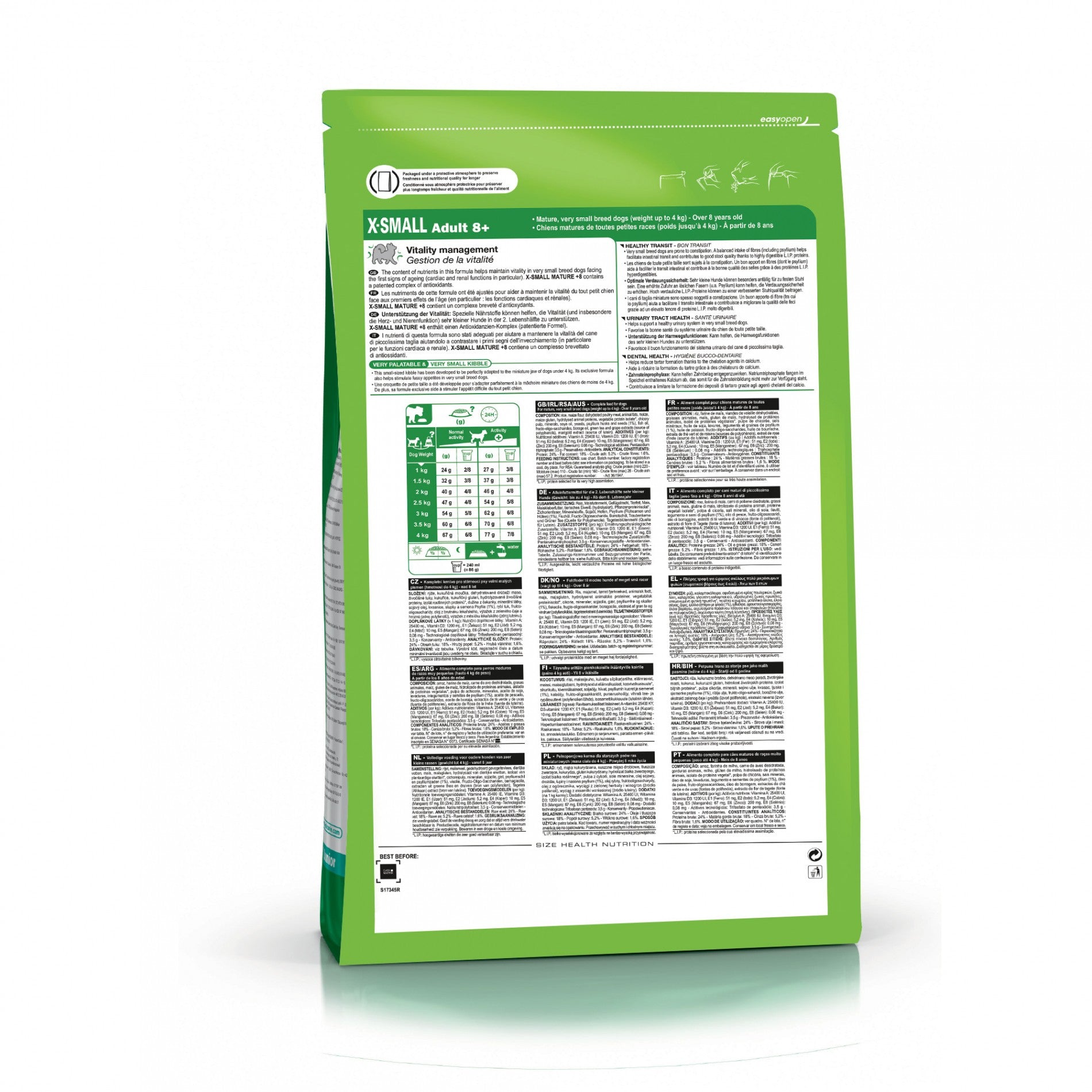 Royal Canin® X-Small Adult 8+ présente plusieurs bénéfices pour la santé de votre chien :
