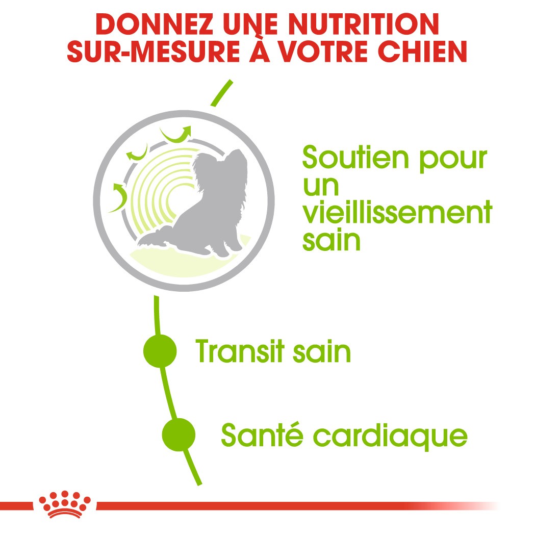 Royal Canin® X-Small Adult 12+ offre plusieurs avantages pour la santé de votre chien :
