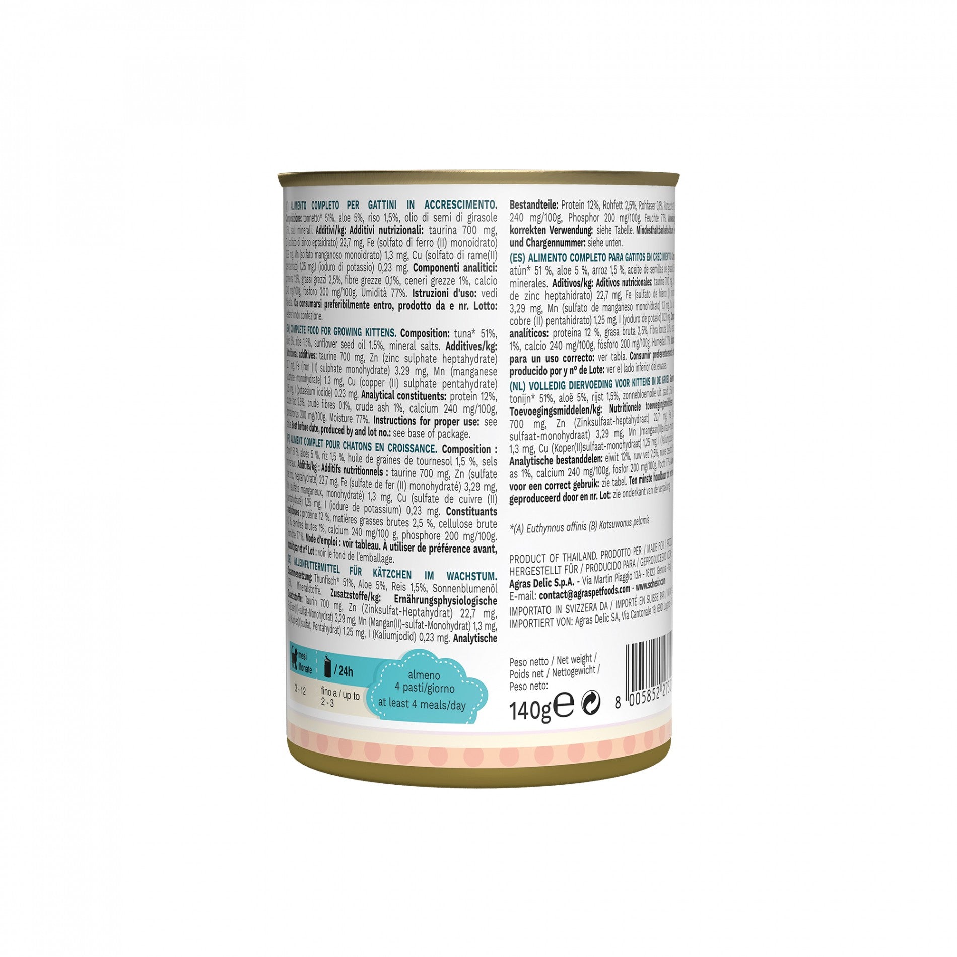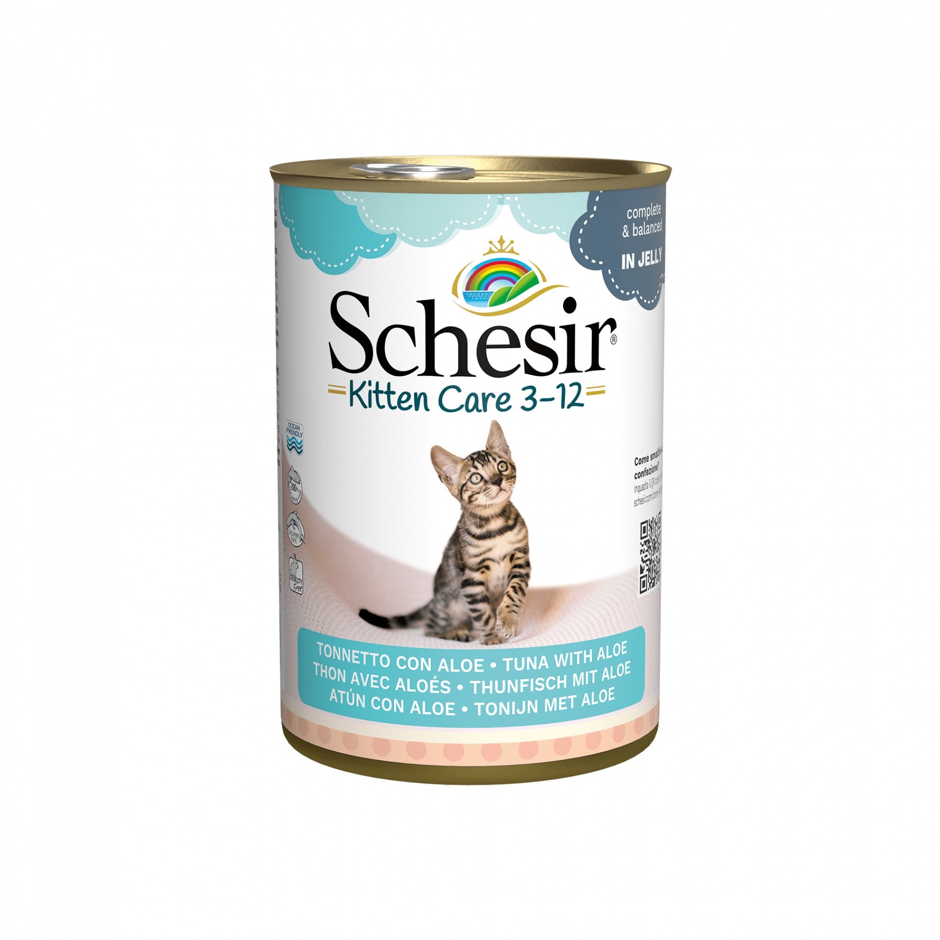 Les pâtées en gelée Kitten Schesir existent en deux saveurs (thon avec aloès et filets de poulet avec aloès) pour le plus grand plaisir des chatons. Elles sont très appétentes et appréciées des chatons.