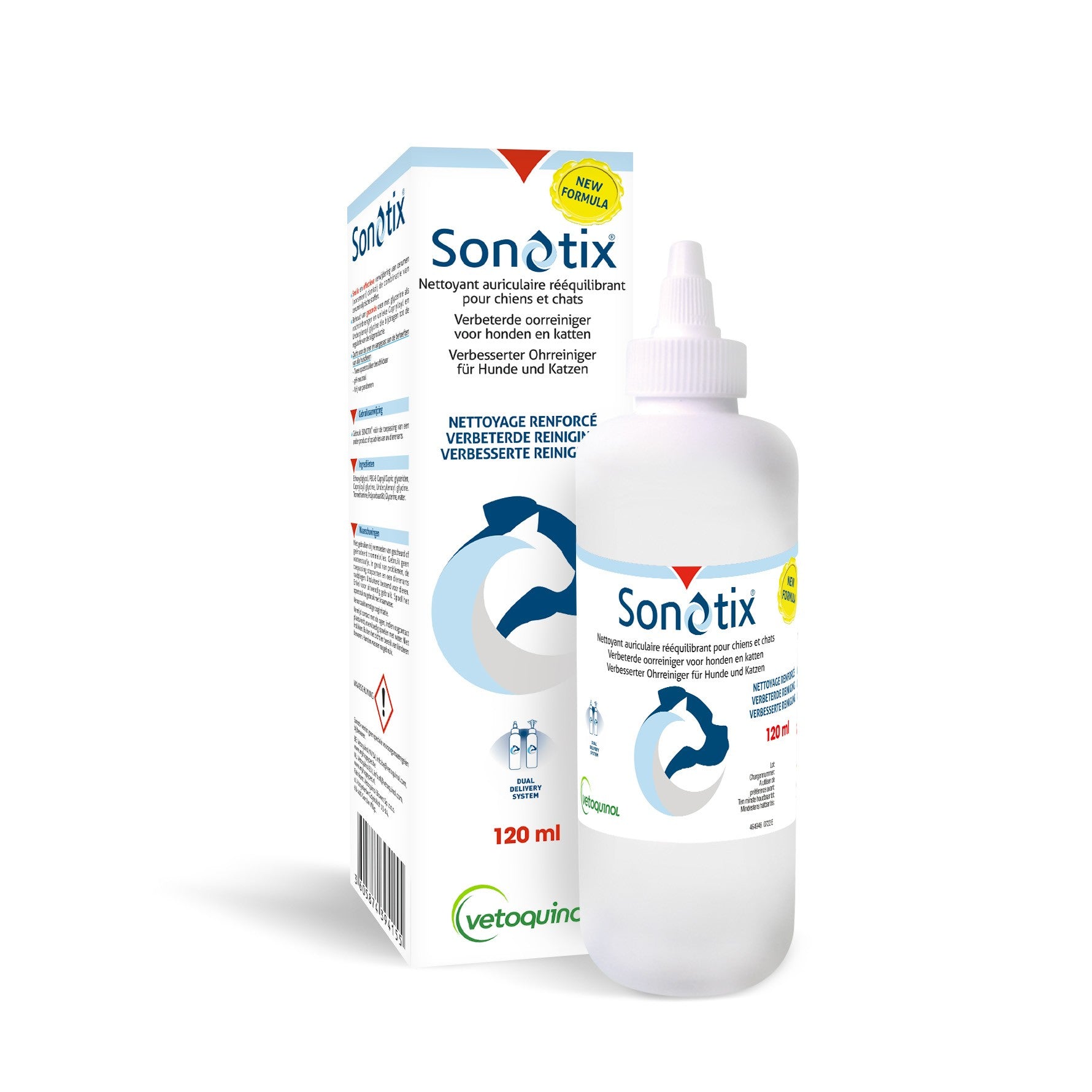 Sonotix est un nettoyant auriculaire rééquilibrant pour chien et chat.
