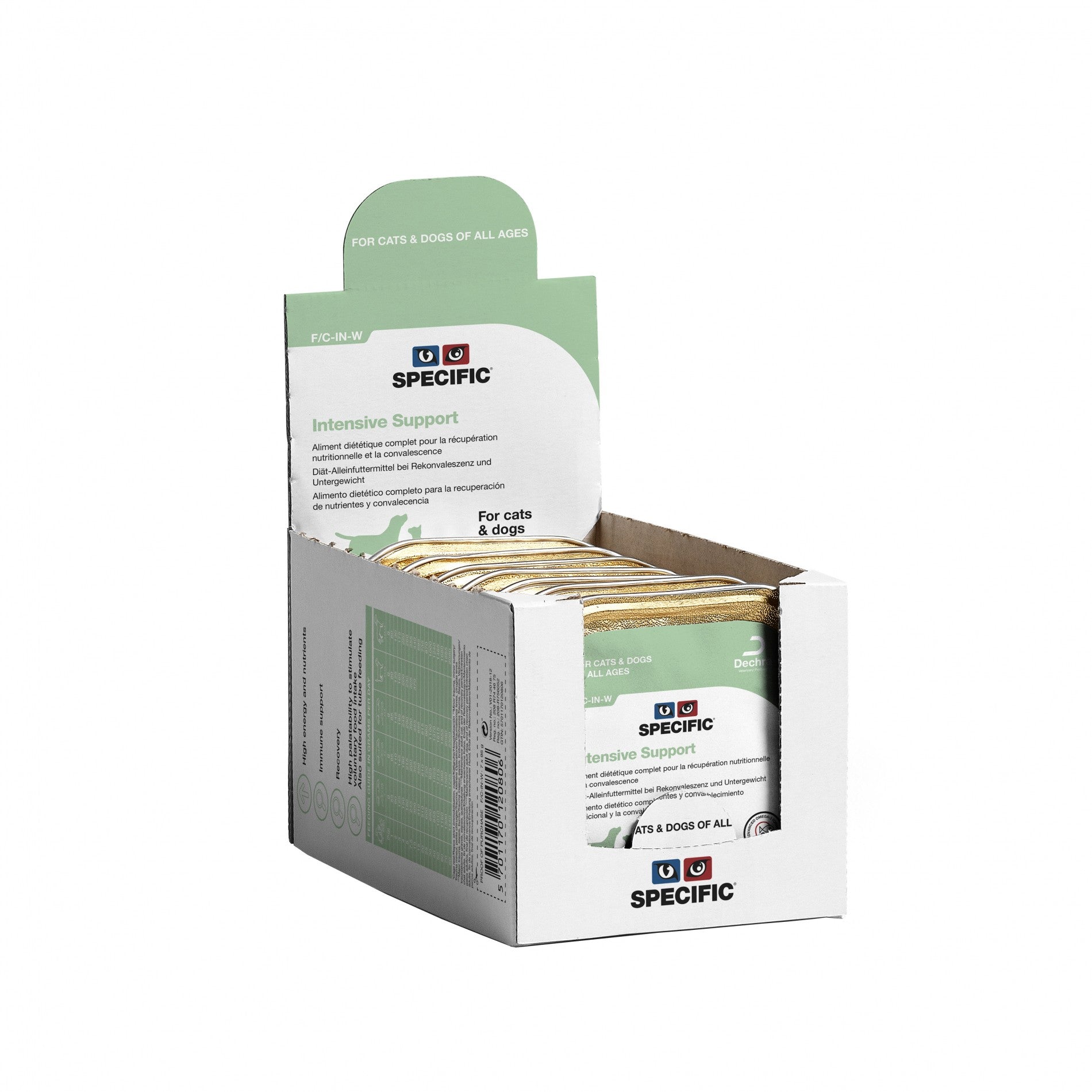 SPECIFIC Intensive Support est un aliment diététique complet visant à optimiser la récupération nutritionnelle ainsi que la convalescence chez le chien et le chat. Il peut aussi être prescrit lors de lipidose hépatique féline.