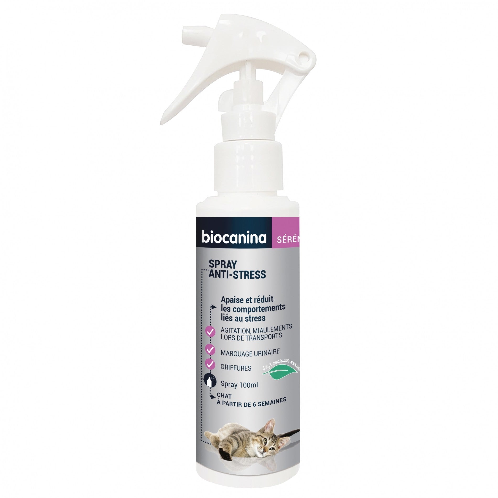 Le spray Anti-Stress Sérénité Biocanina peut être utilisé pour les chats âgés de plus de 6 semaines. Il est composé d'actifs naturels apaisants (cataire).