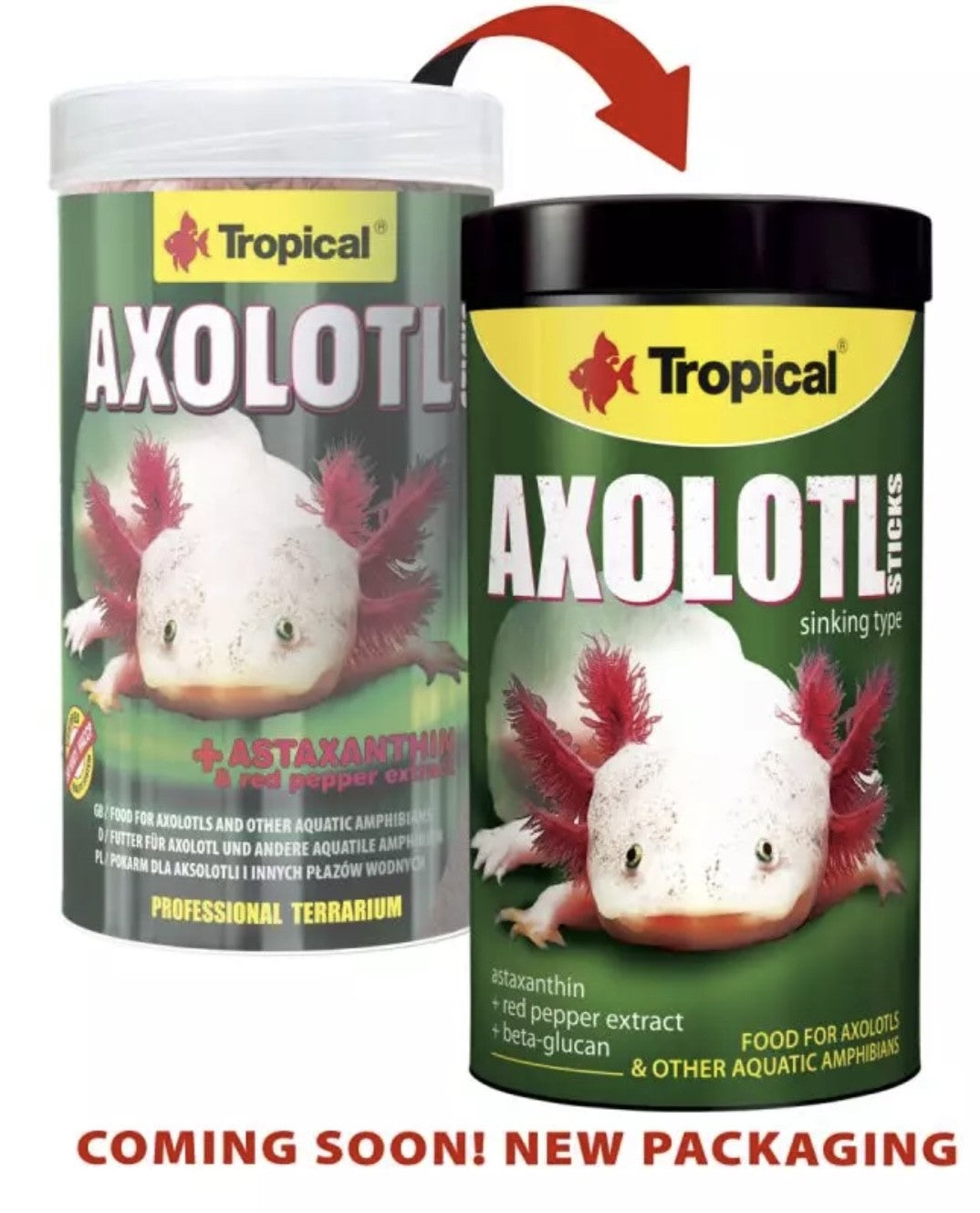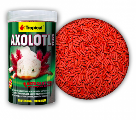 Ces Axolotl Sticks de la marque Tropical se présentent sous la forme de Bâtonnets. C'est un aliment riche en protéines, spécialement conçu pour les axolotes, pleurodèles, grenouilles à griffes et autres amphibiens se nourrissant de matière animale.
