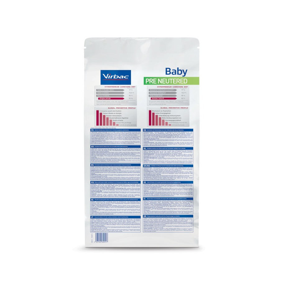 Les croquettes Virbac Veterinary HPM Baby Pre Neutered Cat conviennent aux chatons dès le sevrage et jusqu'à l'âge de 12 mois ou jusqu'à la stérilisation, ainsi qu'aux chattes gestantes ou allaitantes.